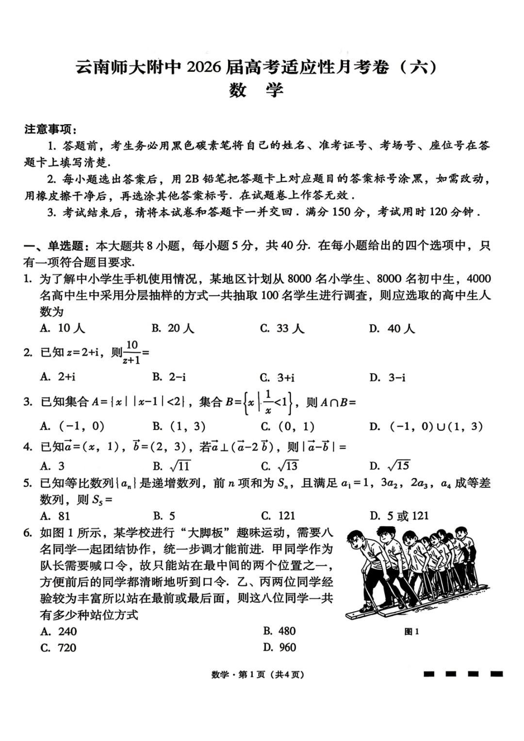 【全科】云南师大附中2026届高三1月高考适应性月考卷(六)