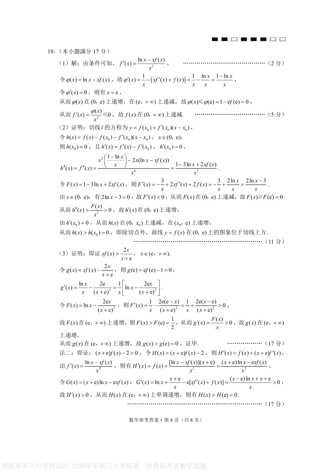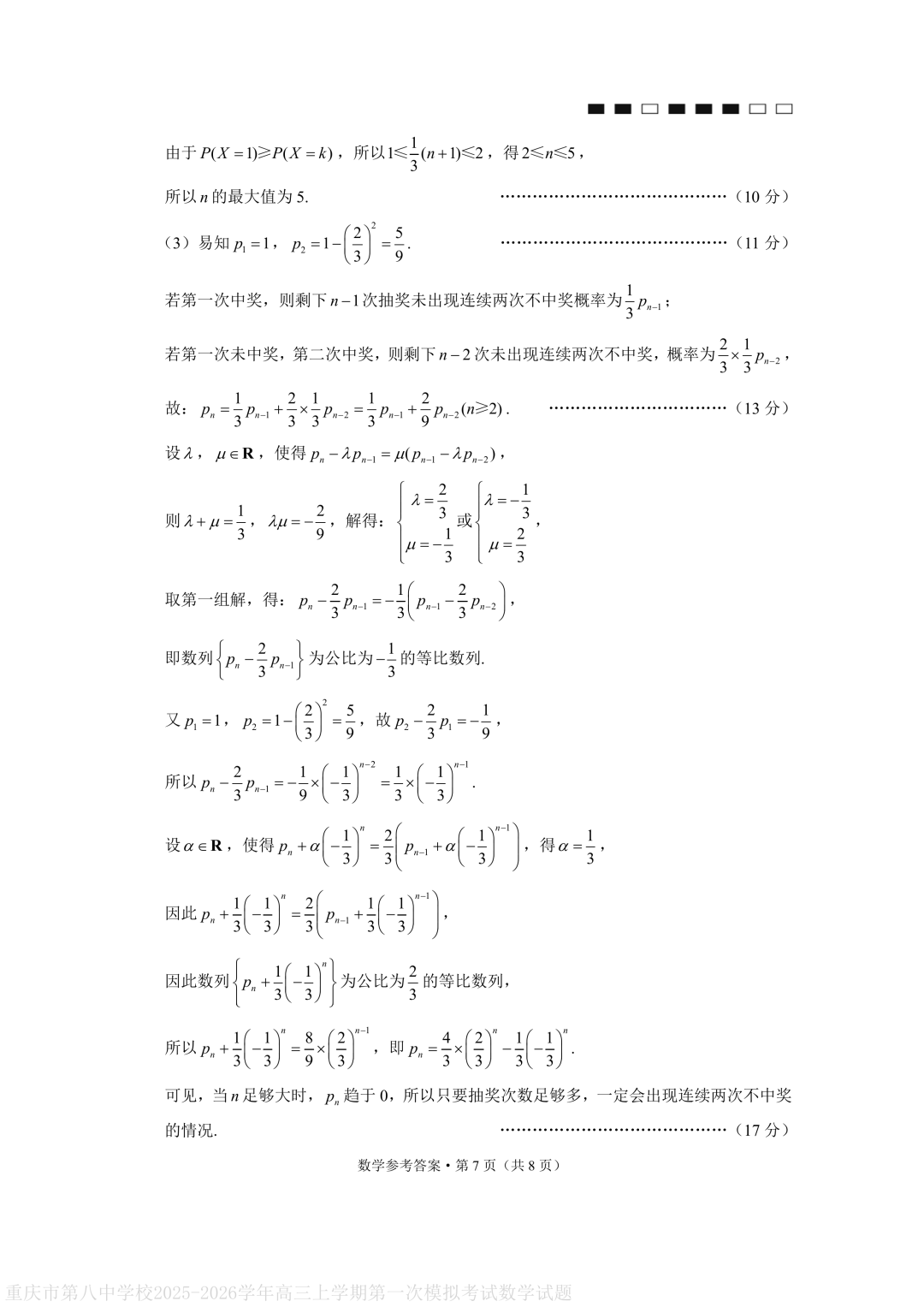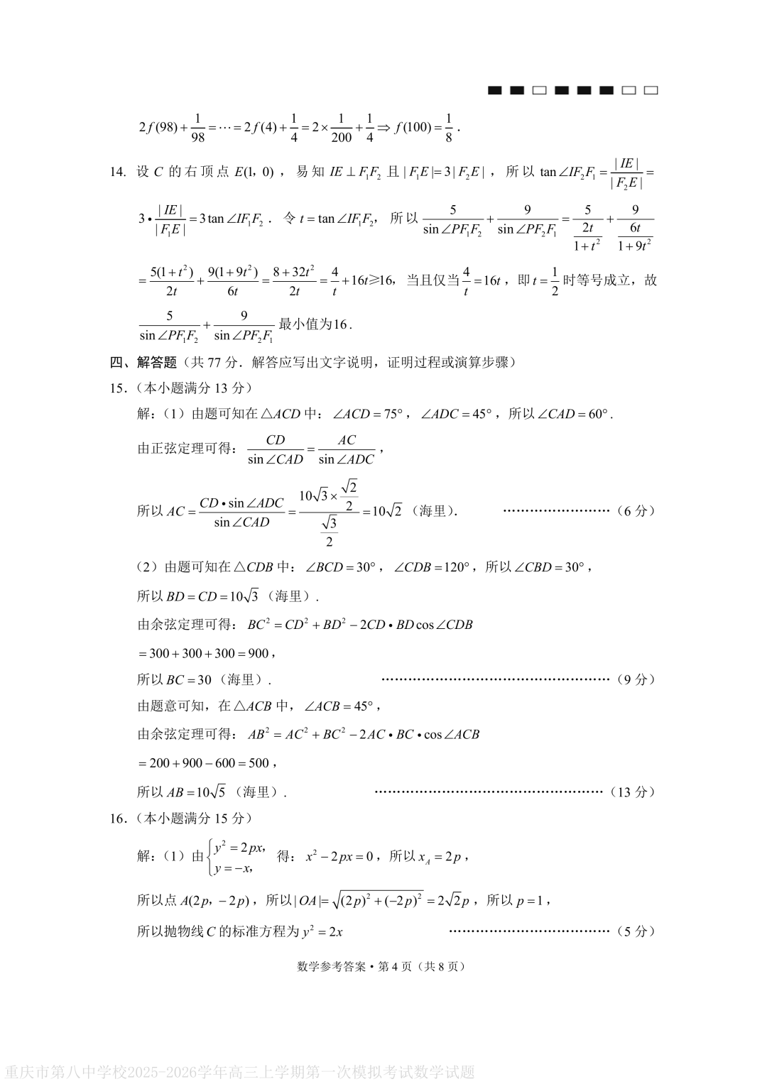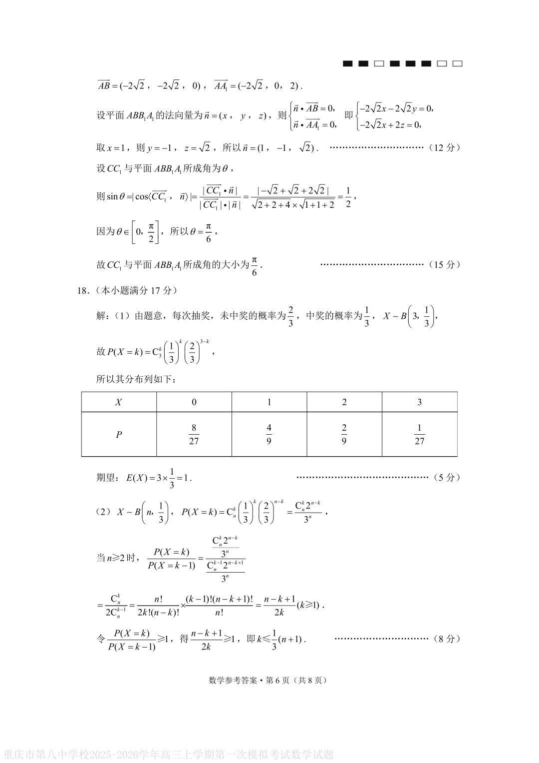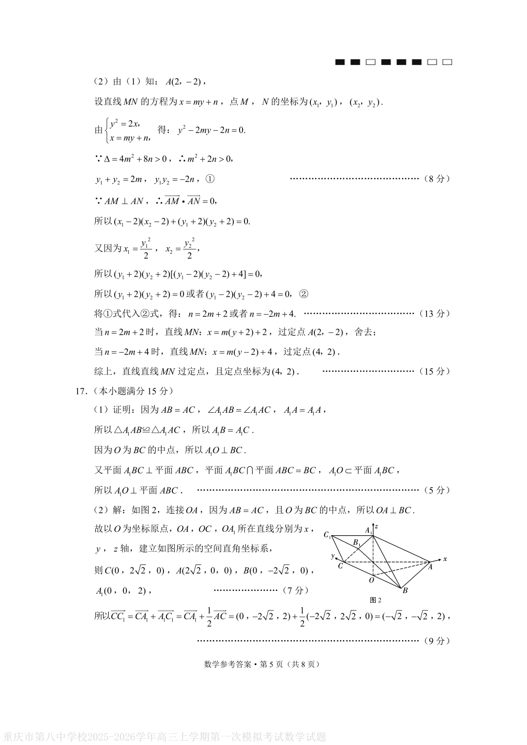 重庆八中2026届高考适应性月考卷(五)数学试题