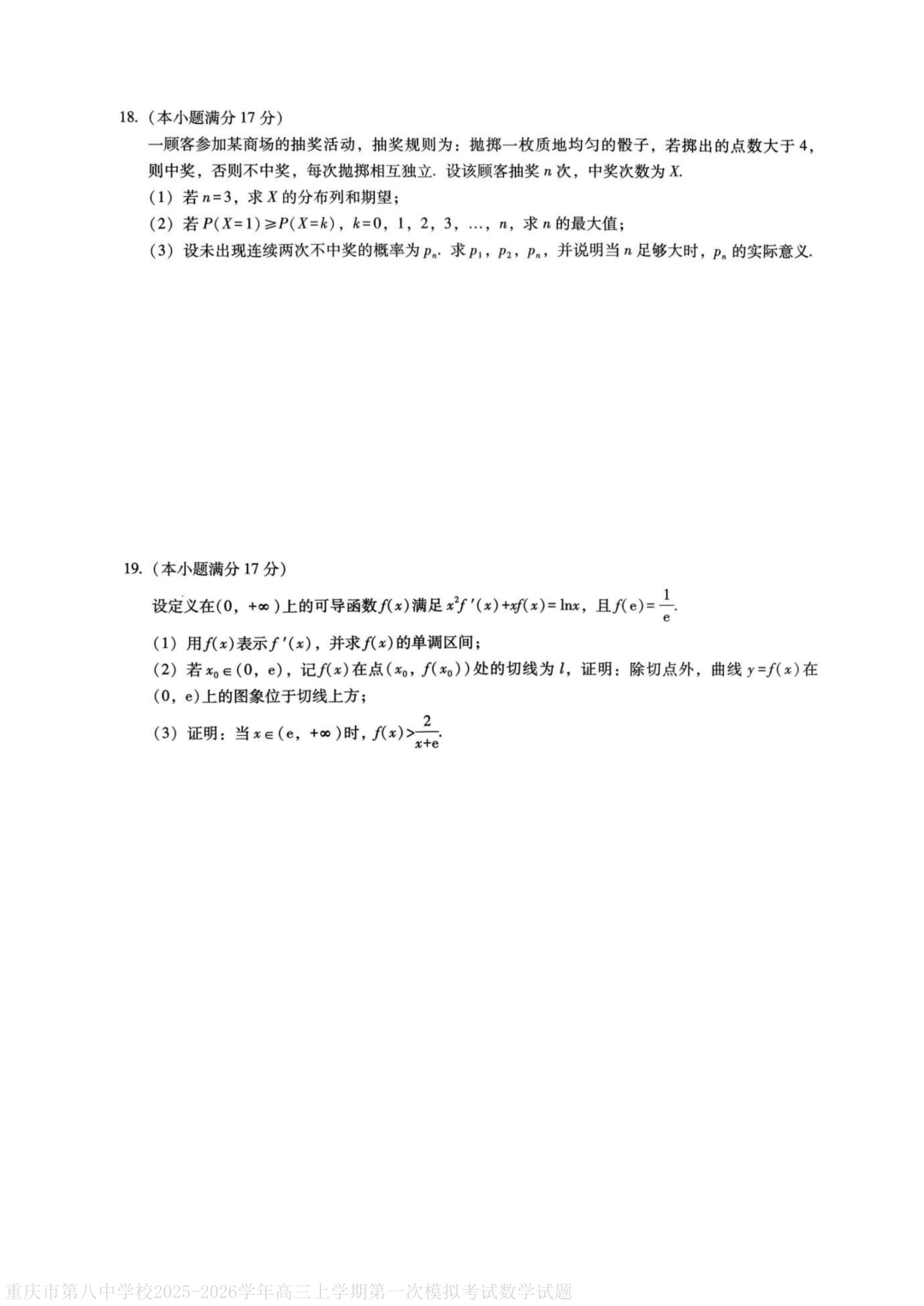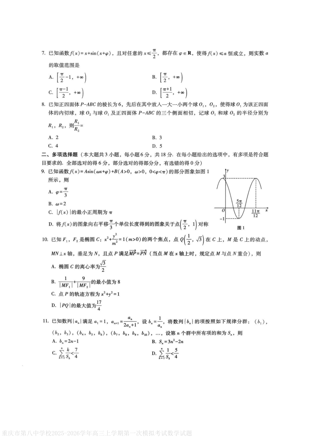 【全科】重庆市第八中学2026届高三1月高考适应性月考卷五(一诊)【全科】重庆市第八中学2026届高三1月高考适应性...
