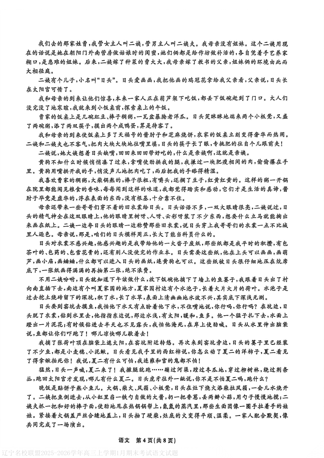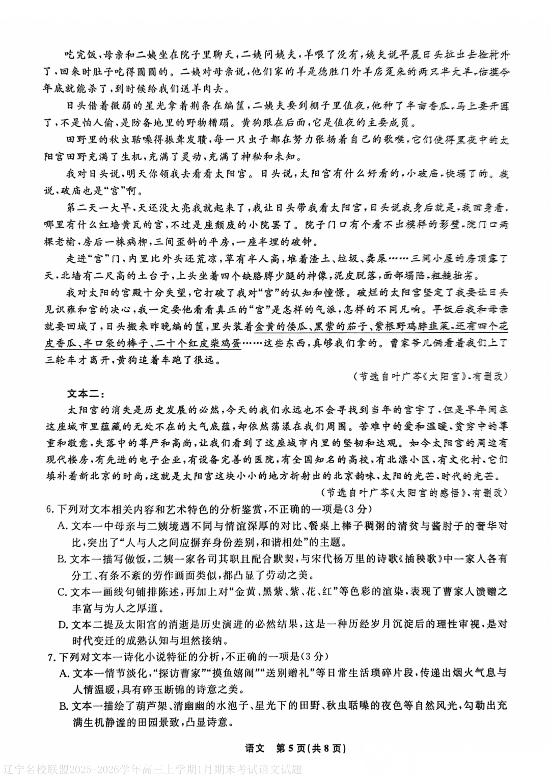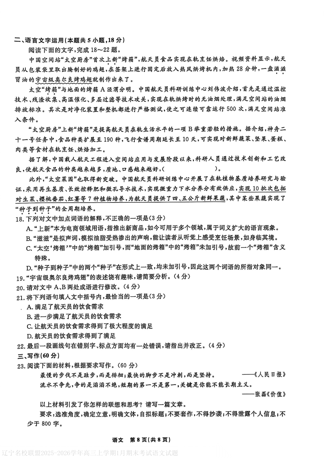 辽宁名校联盟2026届高三上学期1月期末考试语文物理