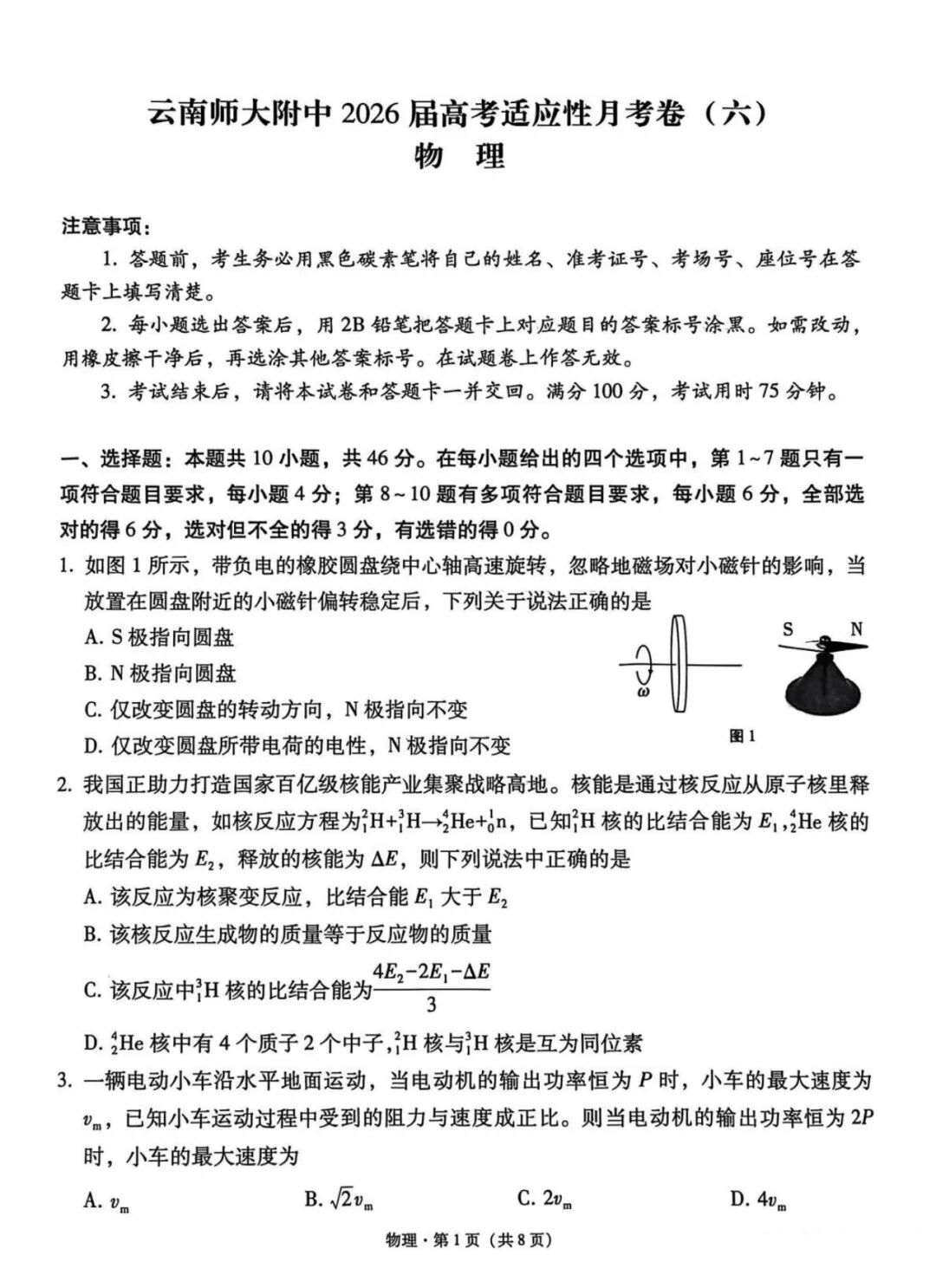 【全科】云南师大附中2026届高三1月高考适应性月考卷(六)【全科】云南师大附中2026届高三1月高考适应性月...