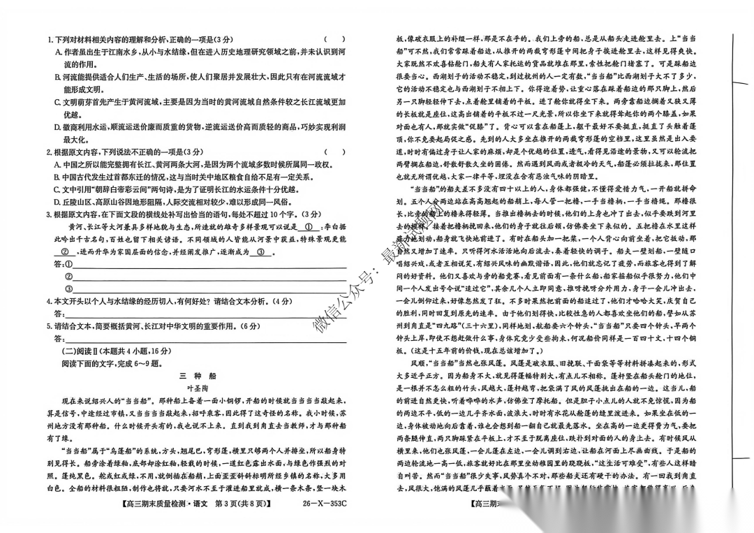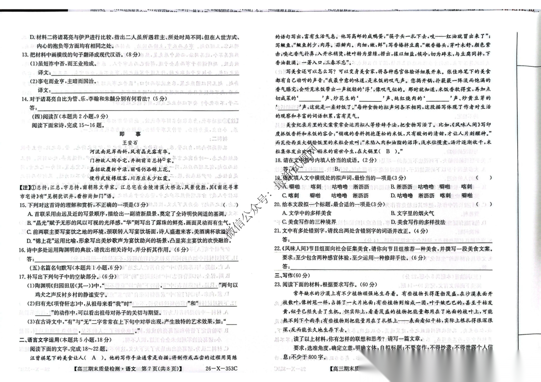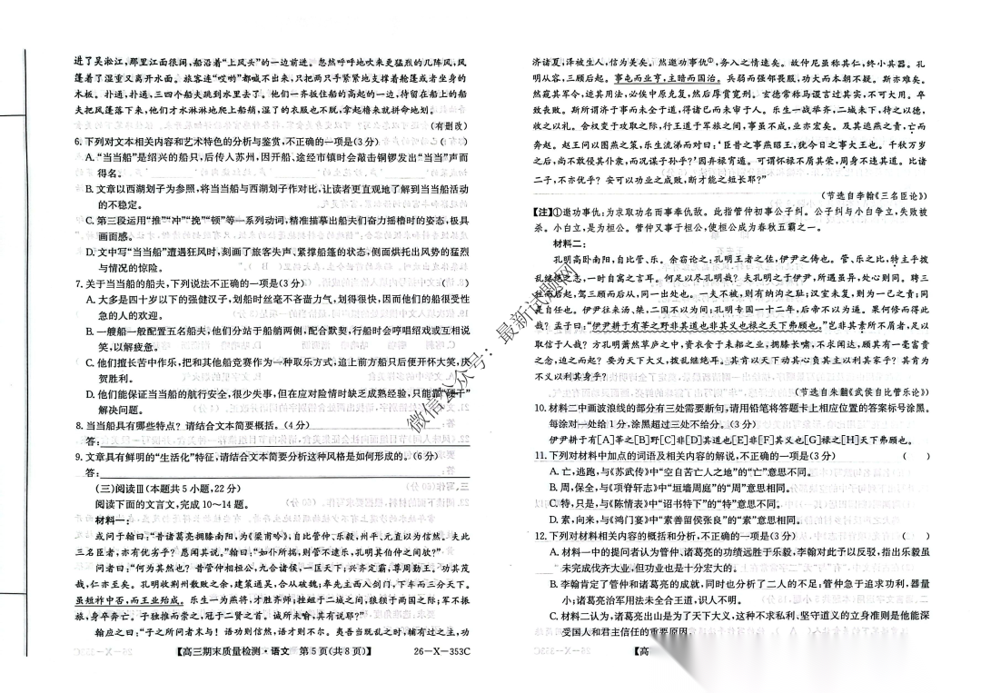 安徽省县域高中合作共享联盟2026届高三上学期1月期末考试语文