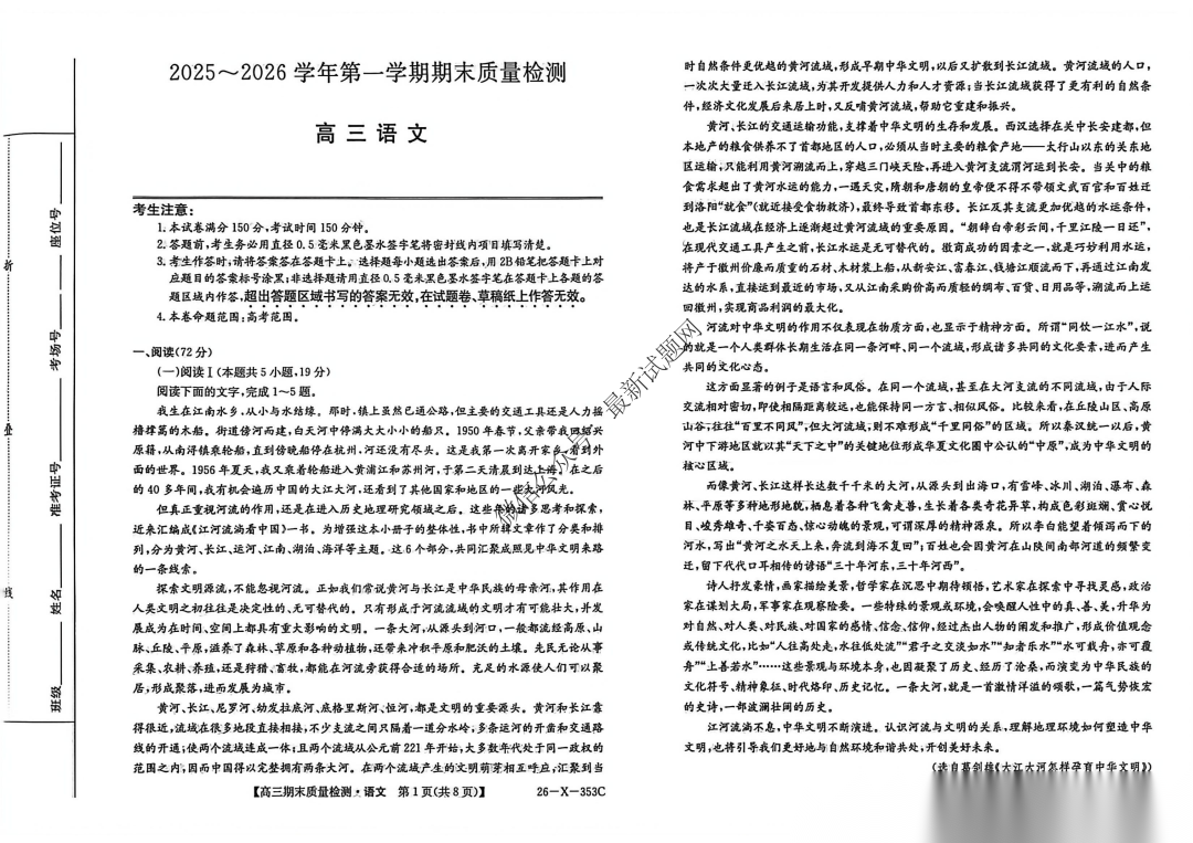 辽宁省沈阳市五校联考2026届高三上学期1月期末考试语文辽宁省沈阳市五校联考2026届高三上学期1月期末考...