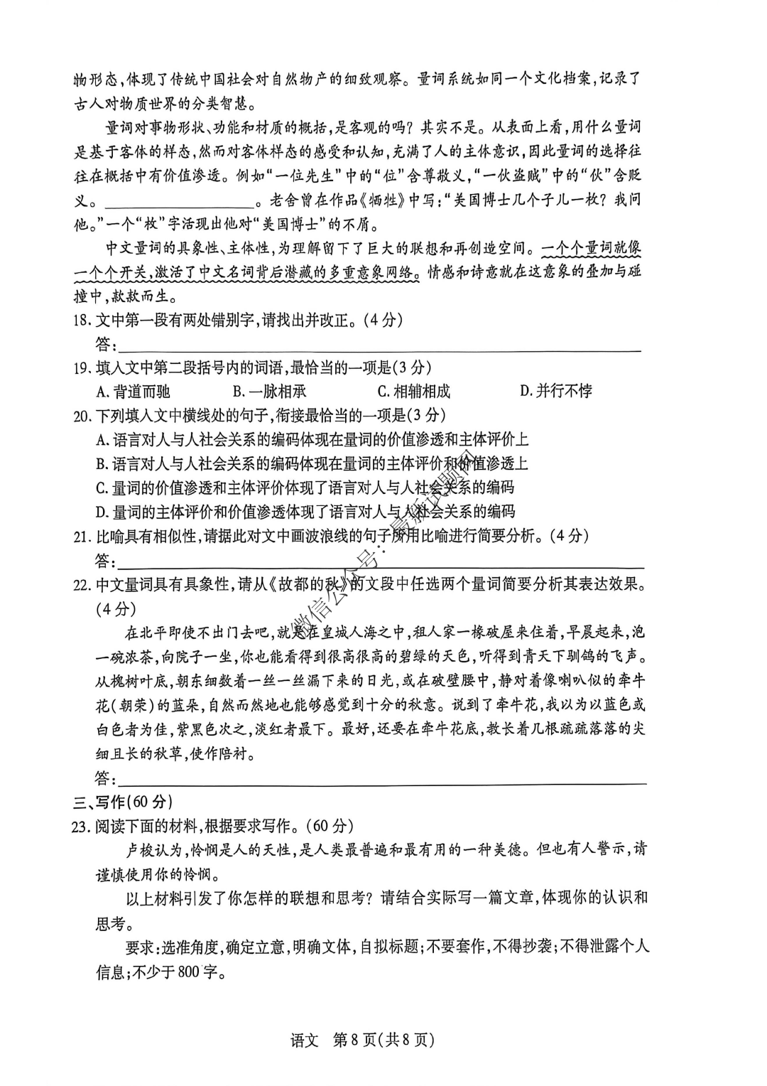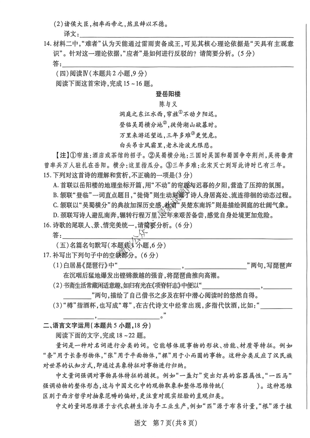 河南省鹤壁市2026届高三一模语文