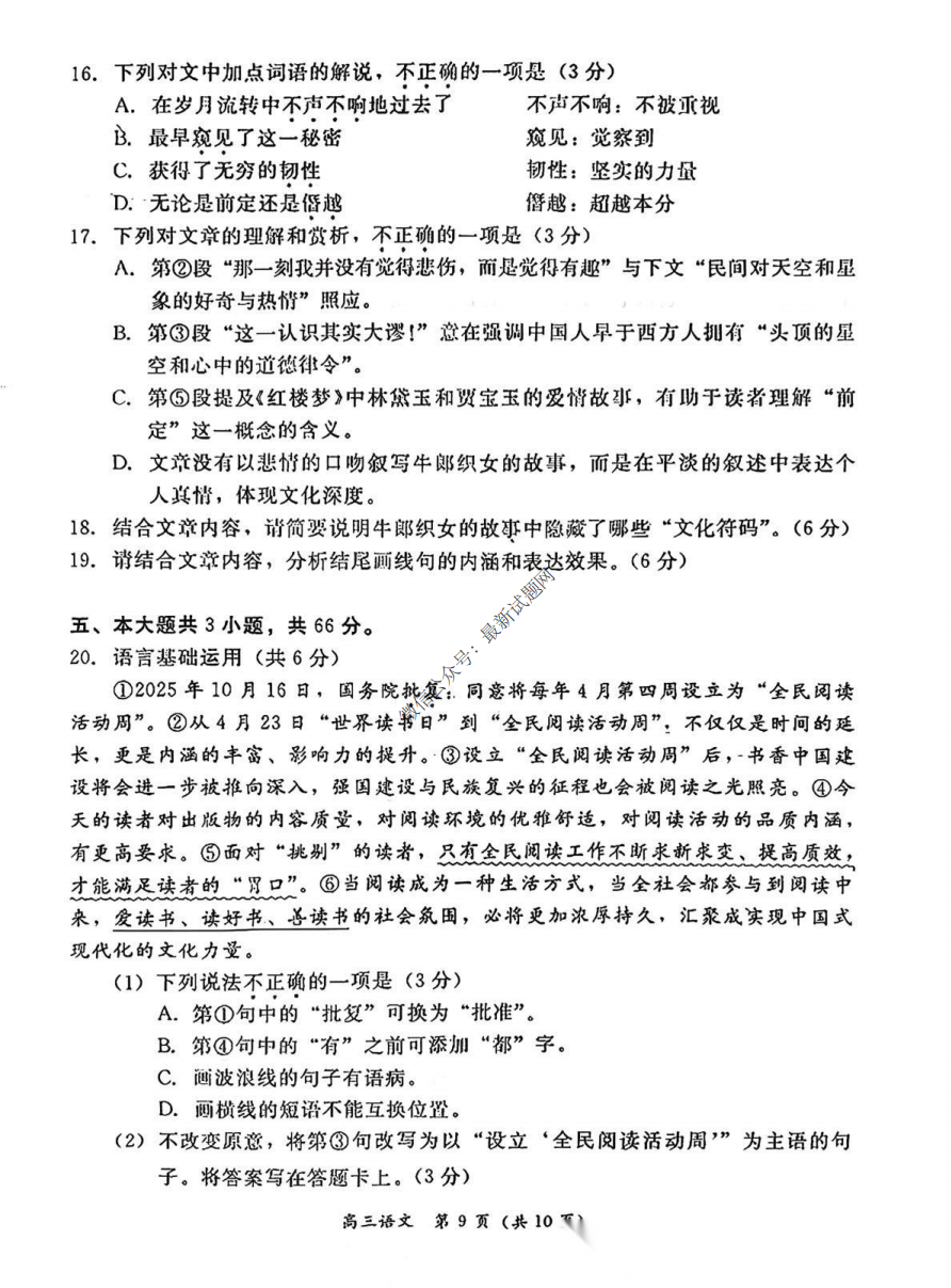 四省天一联考2025-2026学年高三上学期1月月考语文四省天一联考2025-2026学年高三上学期1月月...