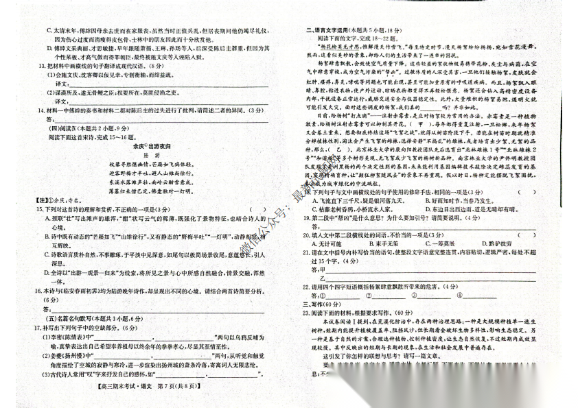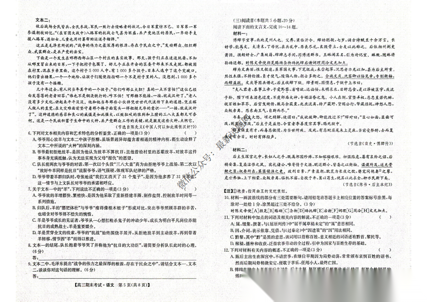 安徽省县域高中合作共享联盟2026届高三上学期1月期末考试语文安徽省县域高中合作共享联盟2026届高三上学期1月...