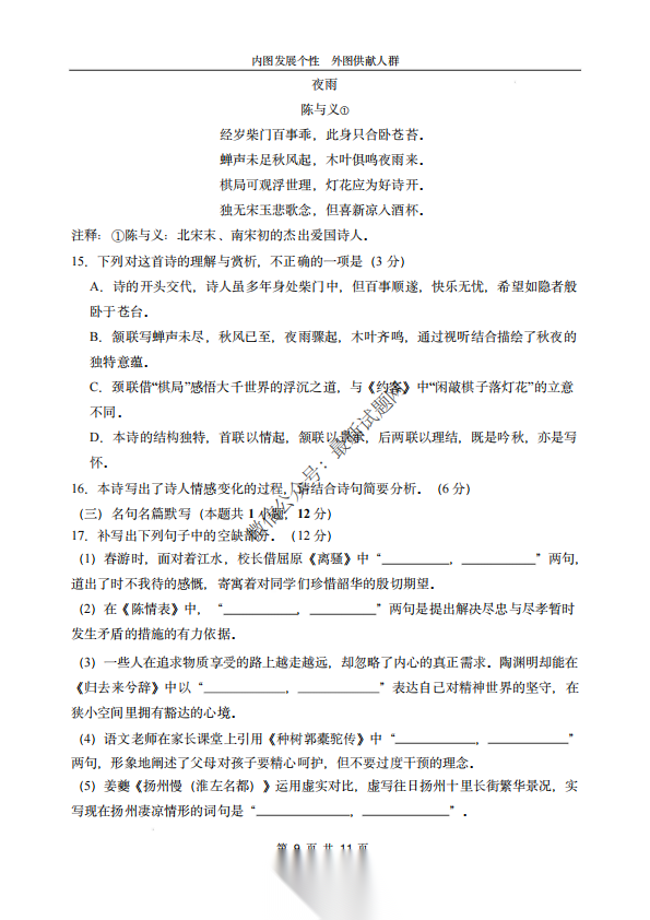 河南省鹤壁市2026届高三一模语文河南省鹤壁市2026届高三一模语文