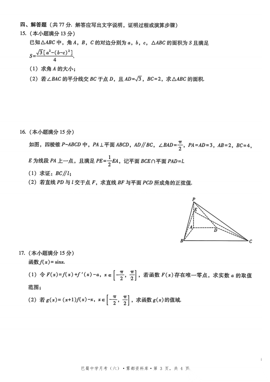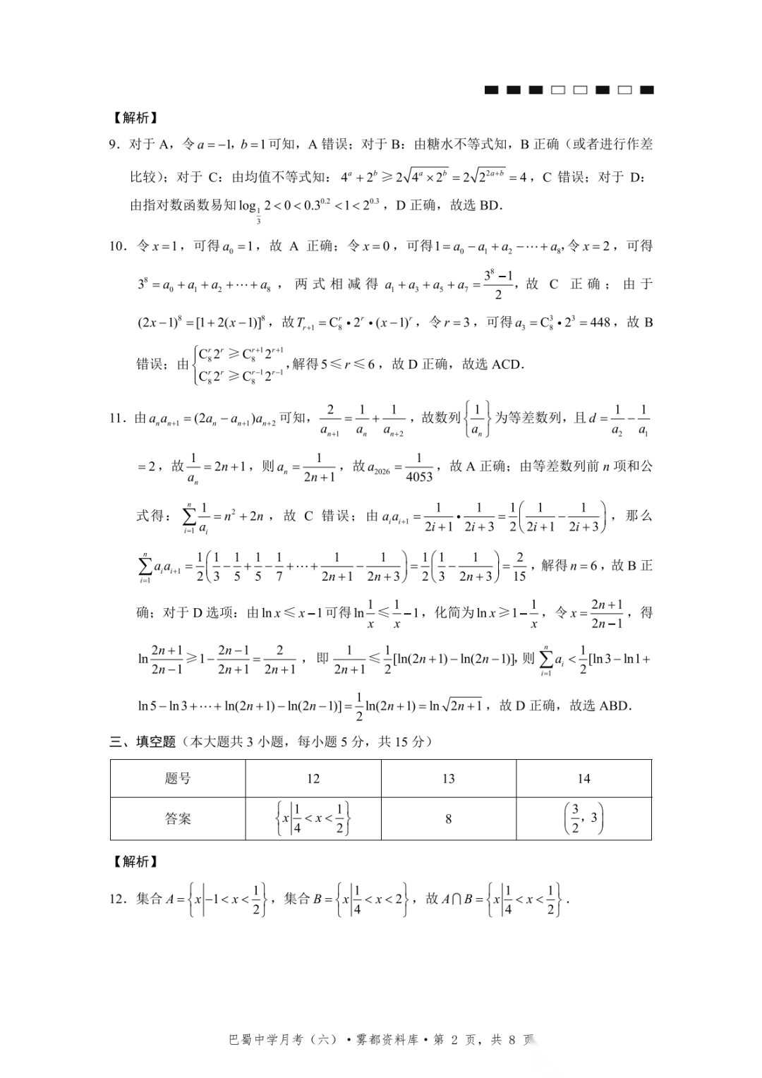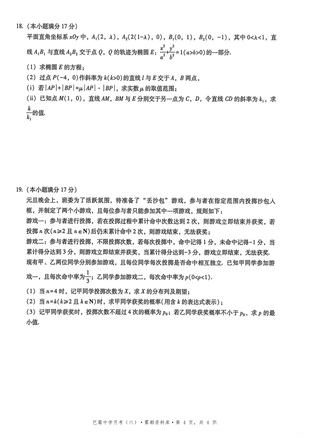 安徽省合肥市第一中学2026届高三上学期1月月考数学安徽省合肥市第一中学2026届高三上学期1月月考数...