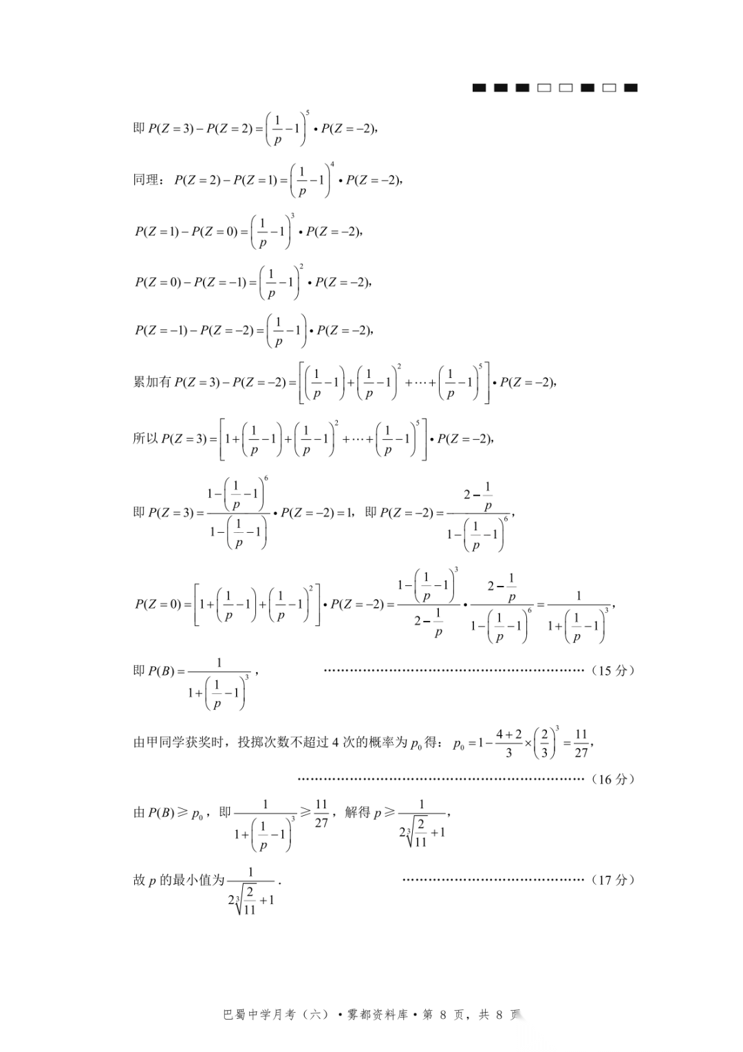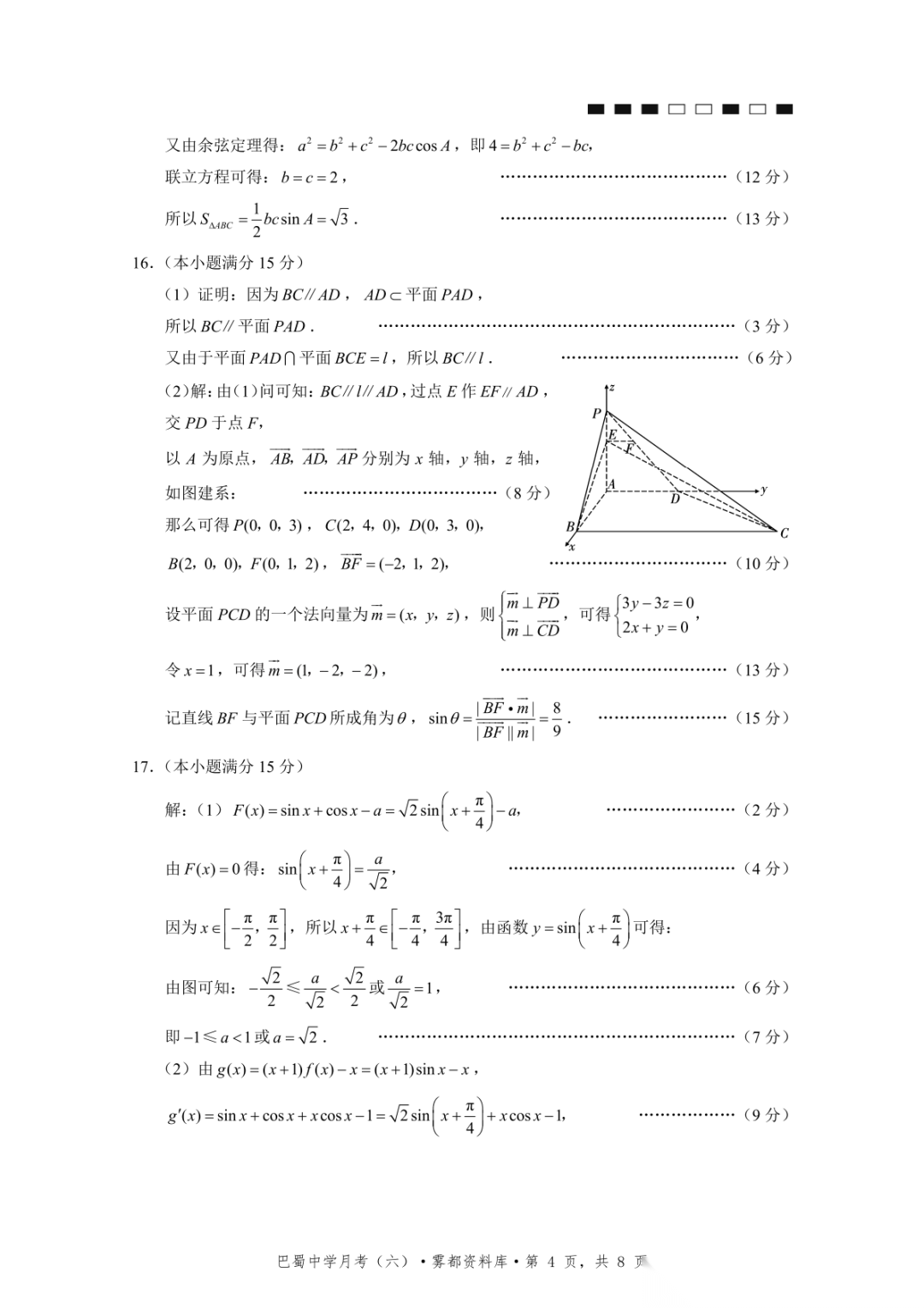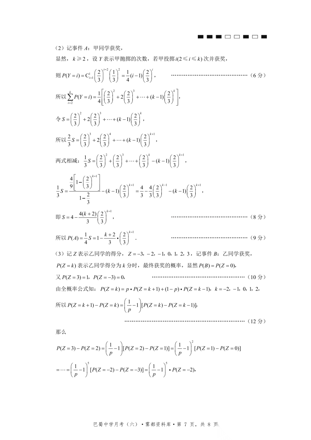 【全科】重庆市巴蜀中学高三一模·暨1月高考适应性月考卷(六)