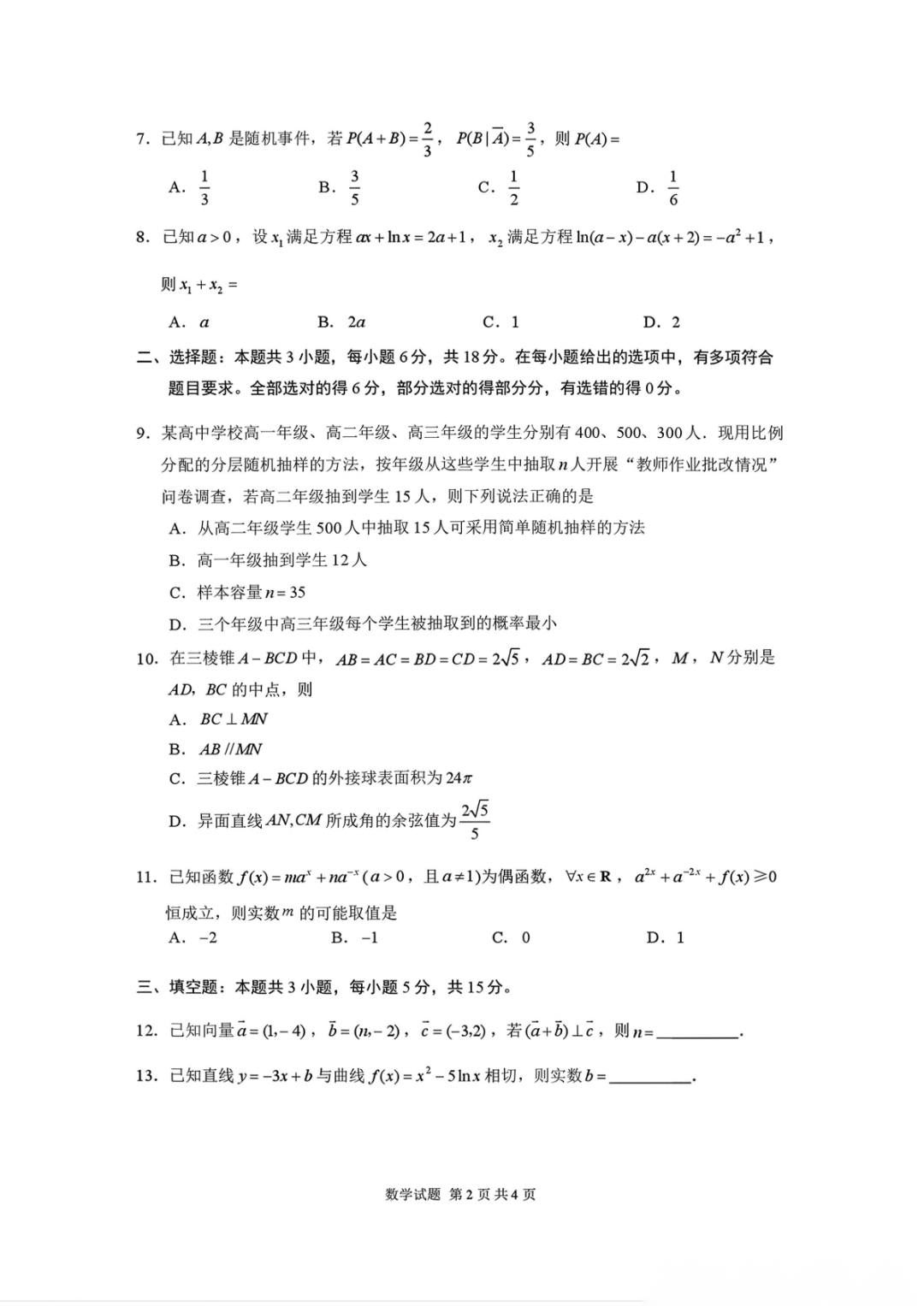 四川省宜宾市普通高中2023级第一次诊断性测试(宜宾一诊)四川省宜宾市普通高中2023级第一次诊断性测试(宜...