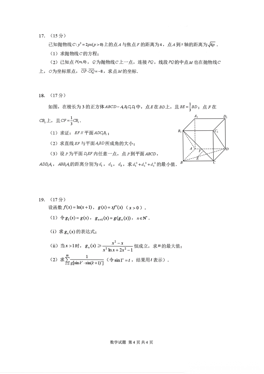 安徽省合肥市第一中学2026届高三上学期1月月考数学安徽省合肥市第一中学2026届高三上学期1月月考数...