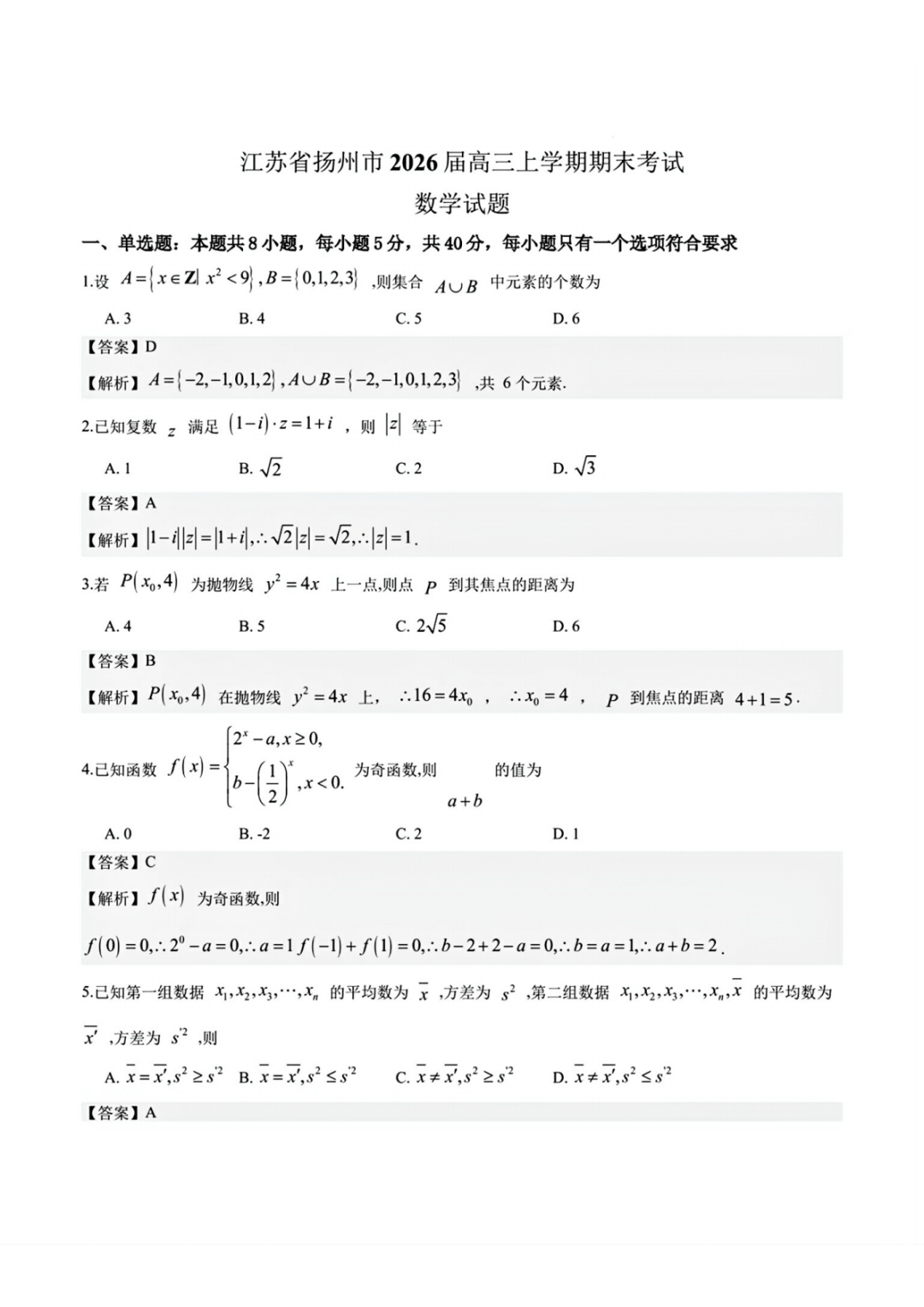扬州市2026届高三期末考试下载扬州市2026届高三期末考试下载