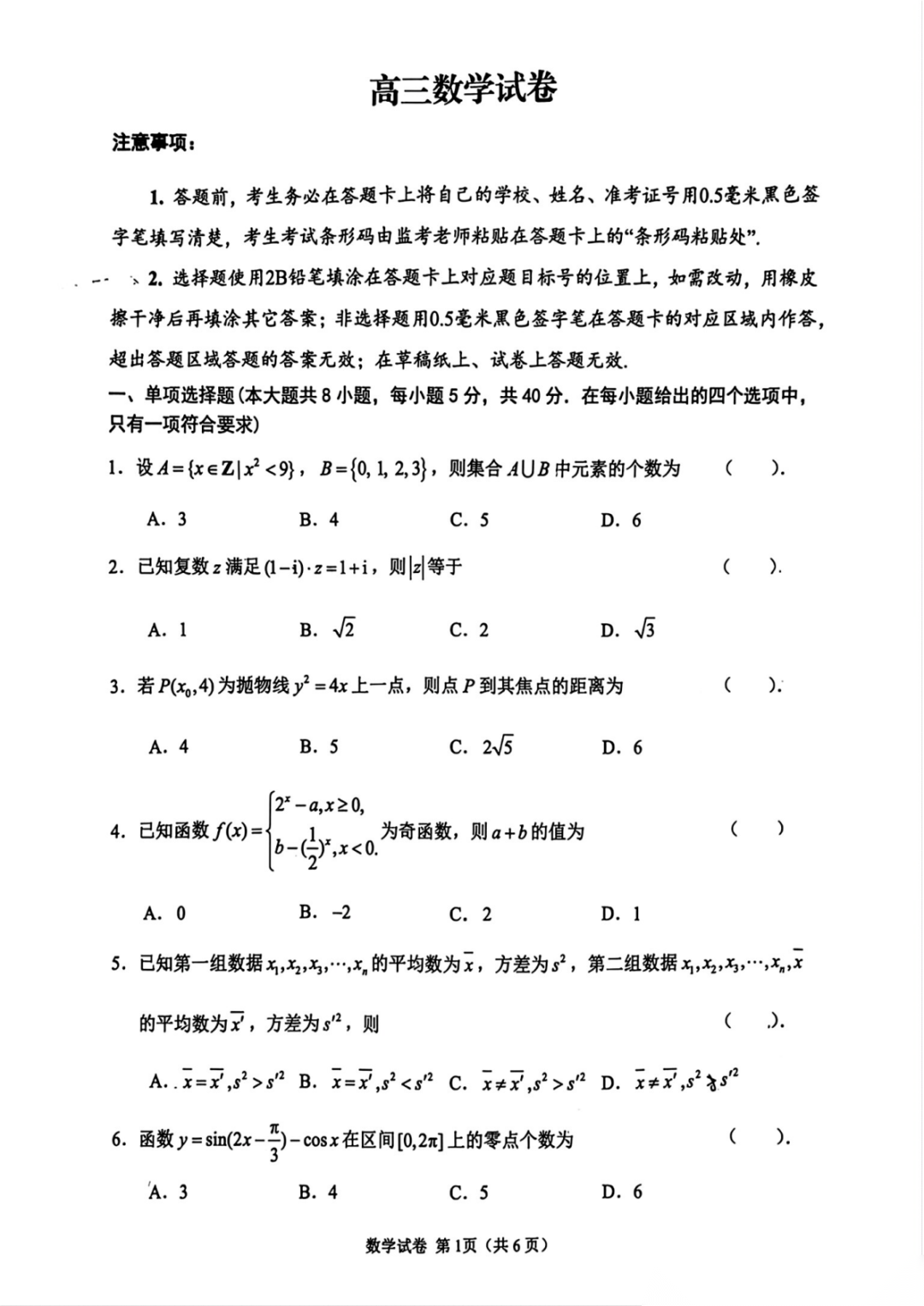 衡宇2025-2026学年高三一轮复习摸底检测下载衡宇2025-2026学年高三一轮复习摸底检测下载