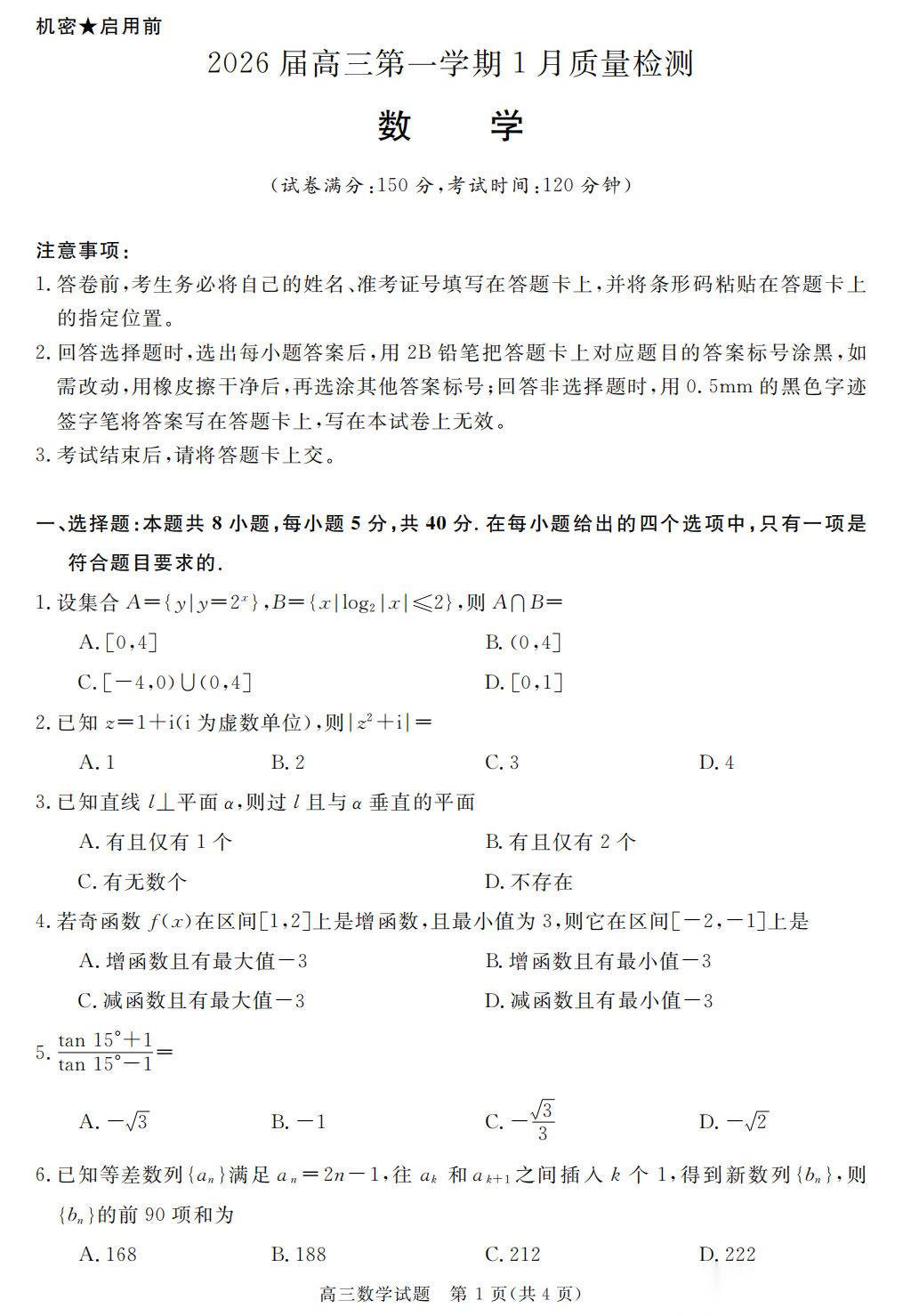【全科】华师联盟2026届高三第一学期1月质量检测