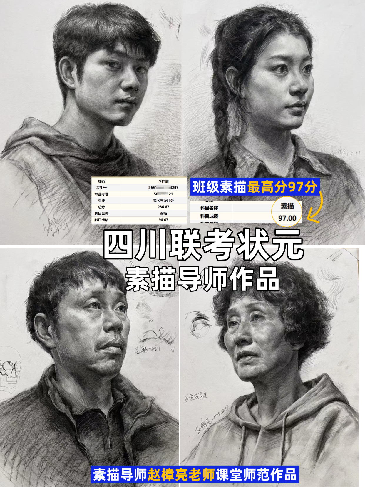 清美班素描头像老师为成都老鹰画室素描负责人赵樟亮老师作品: