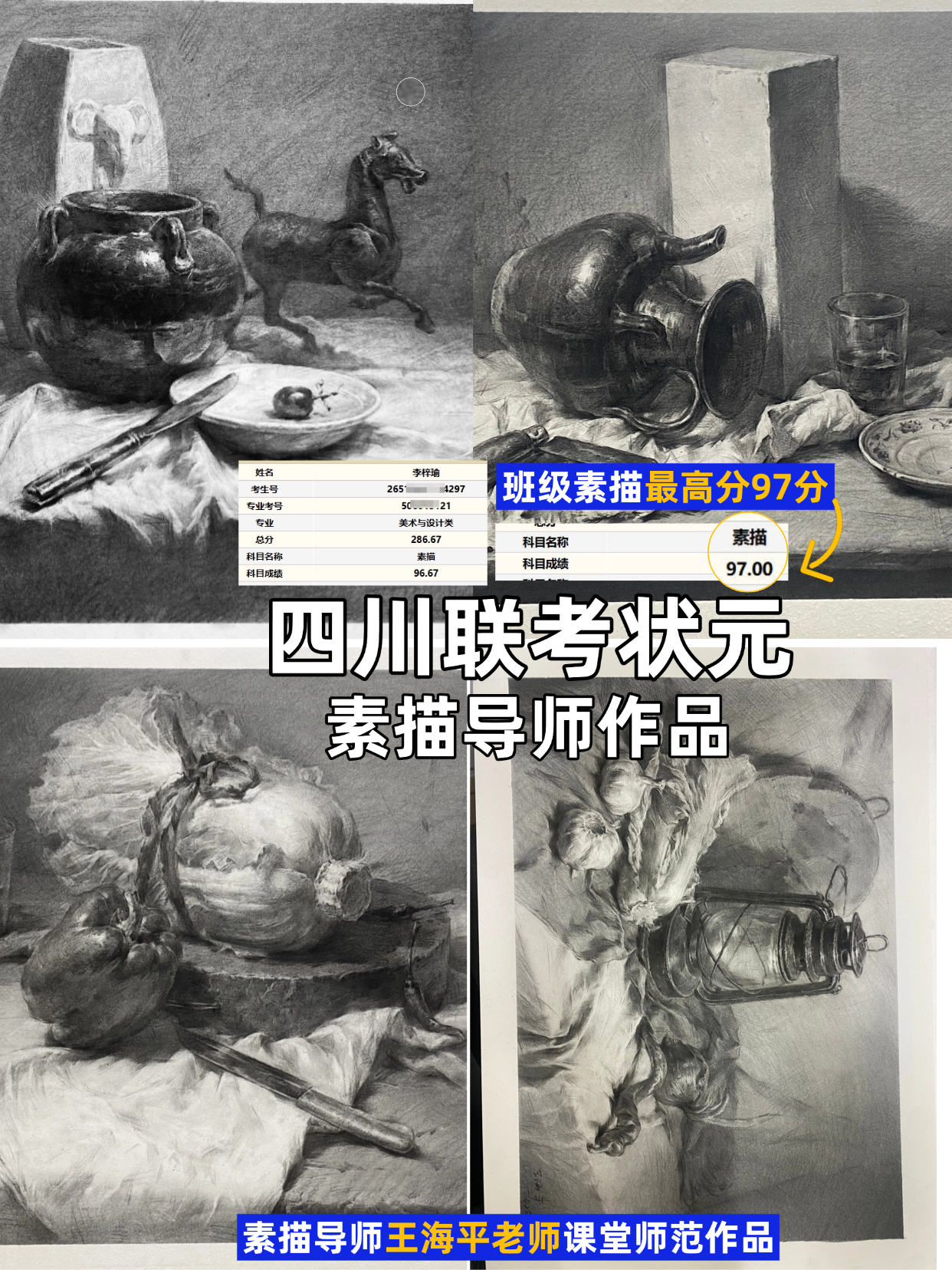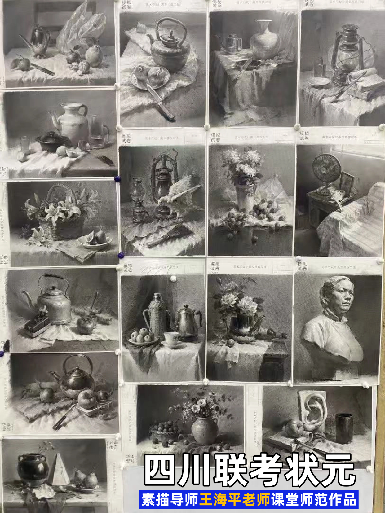 清美班素描静物老师为成都老鹰画室素描组长王海平老师作品: