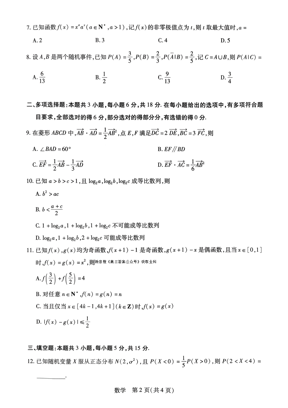 广东省汕头市2026届高三上学期1月教学质量监测数学试卷广东省汕头市2026届高三上学期1月教学质量监测数...