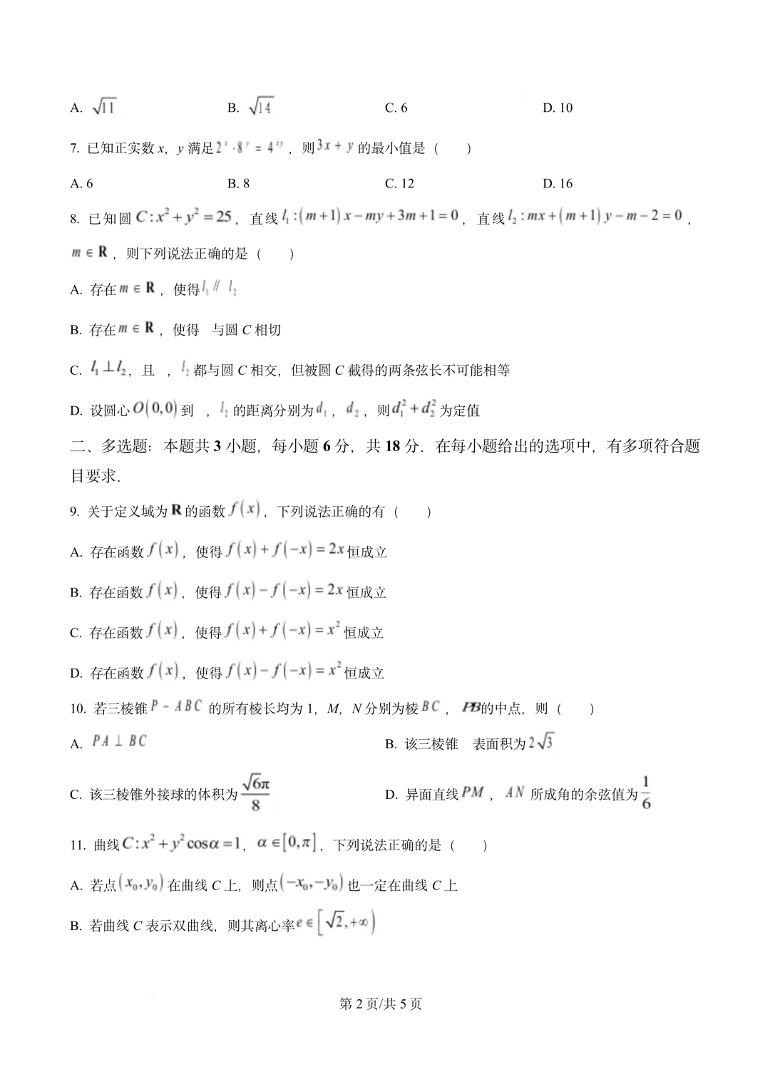 四川省绵阳市2026届高三上学期第二次诊断性考试(绵阳二诊)四川省绵阳市2026届高三上学期第二次诊断性考试(...