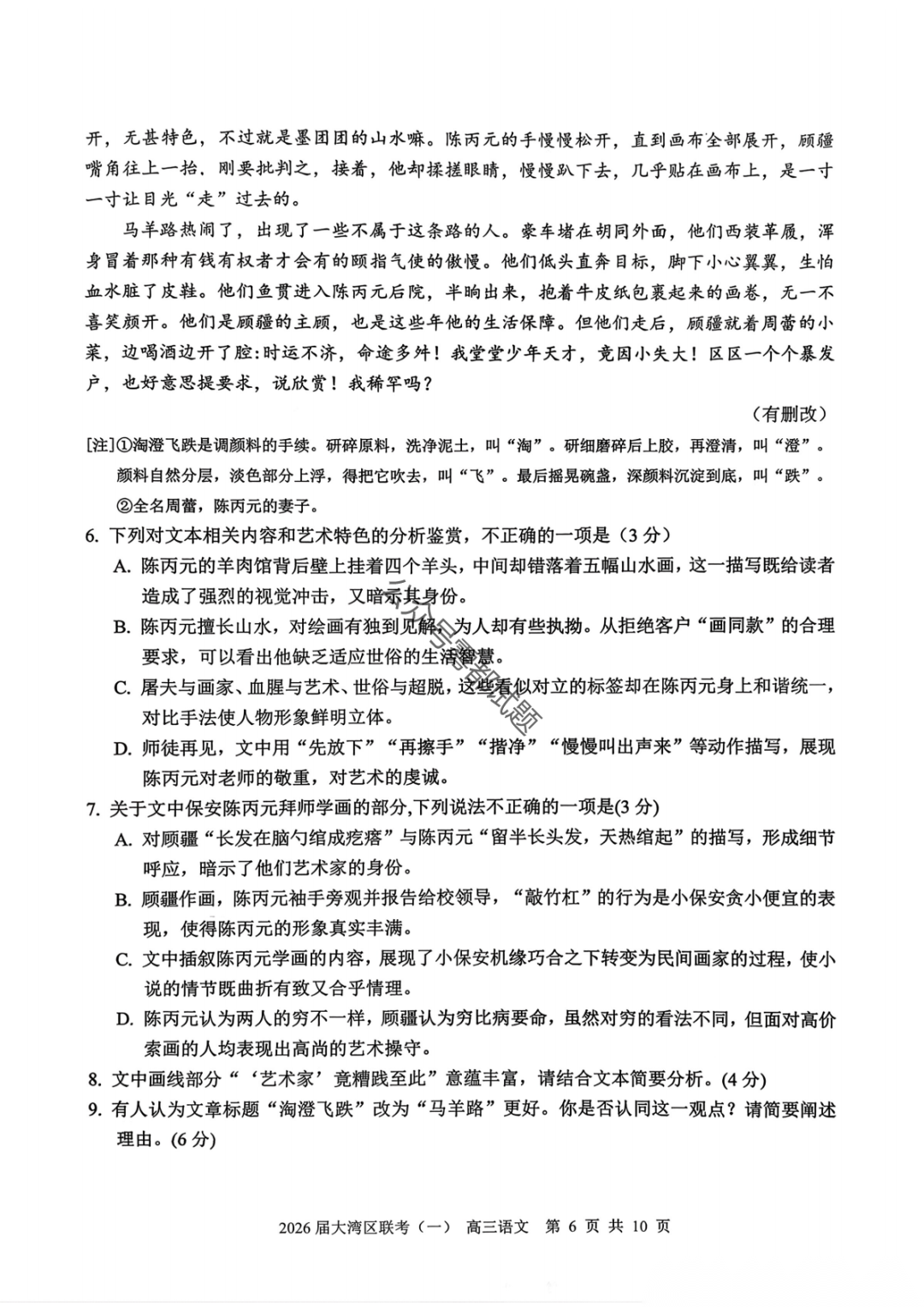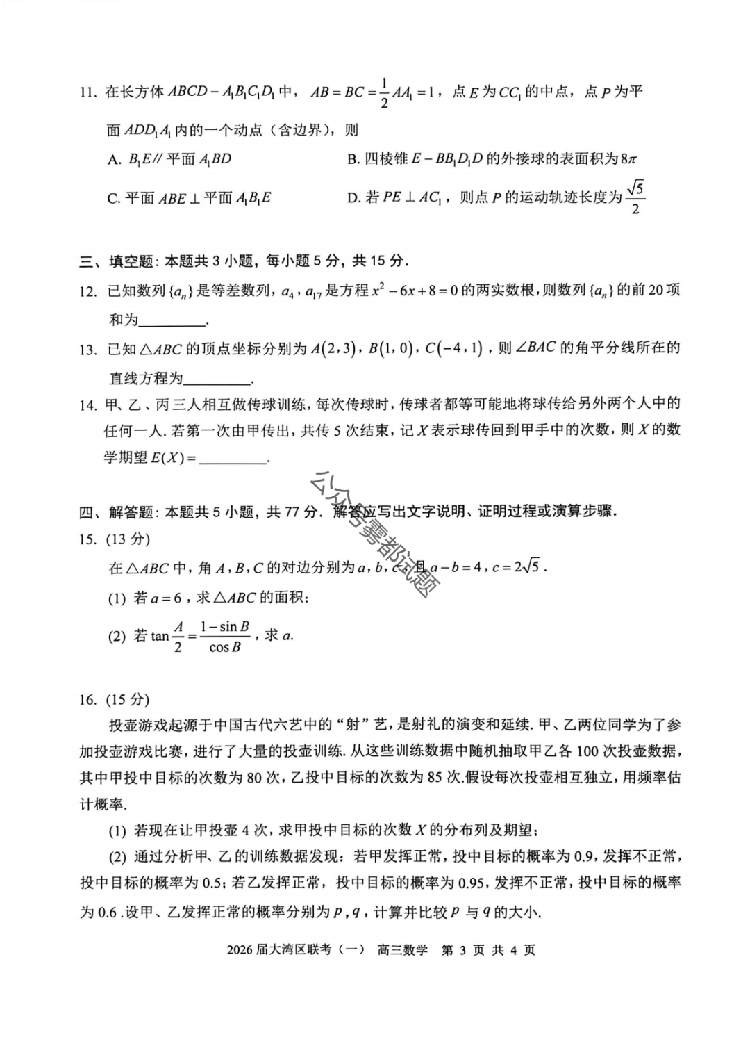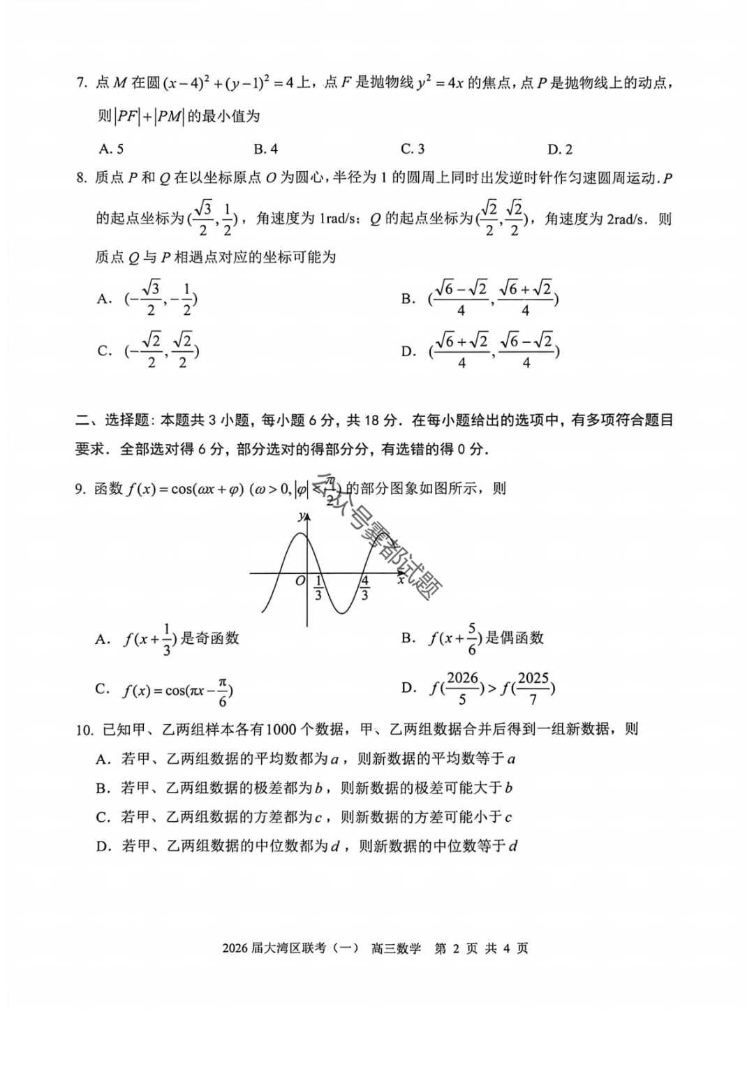 2026届大湾区高三联合模拟考试一答案2026届大湾区高三联合模拟考试一答案
