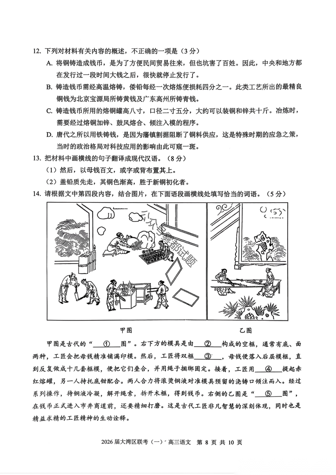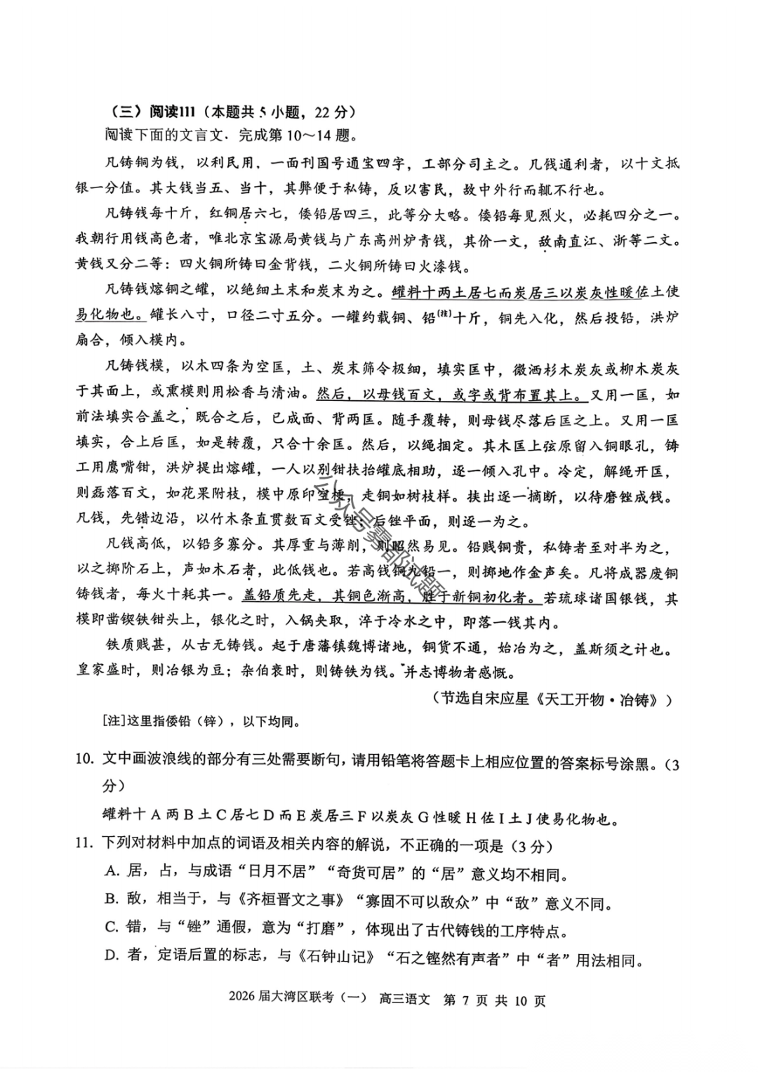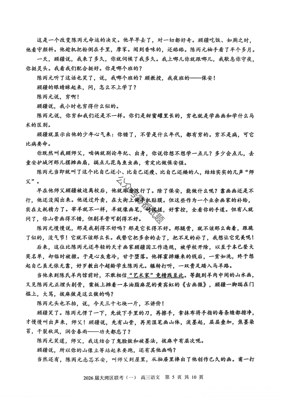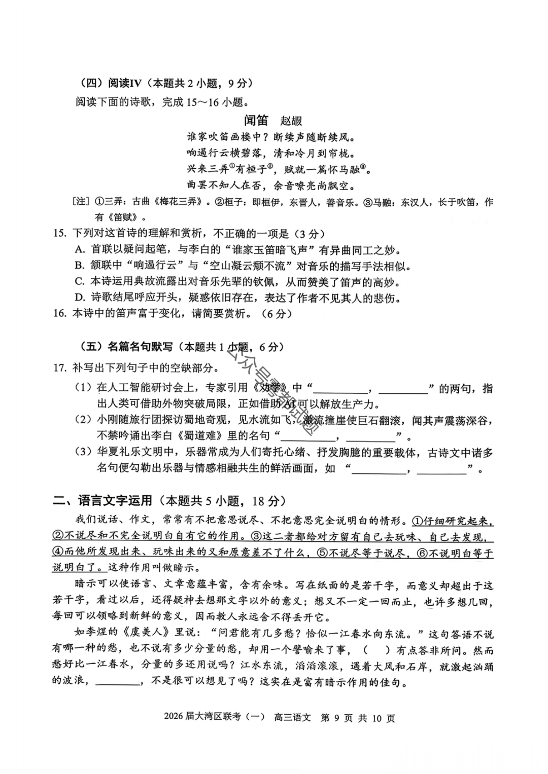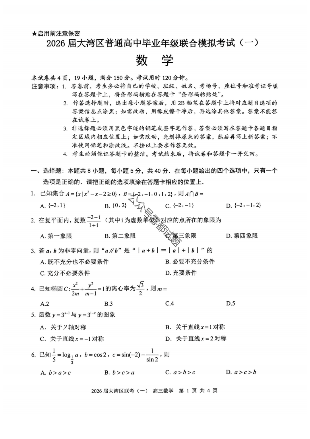 2026届大湾区普通高中毕业年级联合模拟考试(一)第一天科目(大湾区一模)