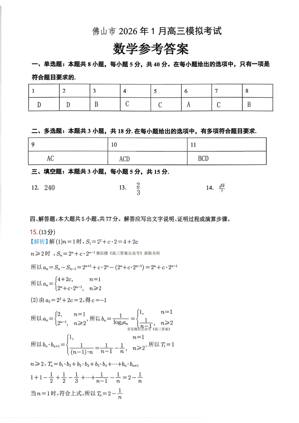 【佛山一模】2025-2026学年佛山市高三教学质量检测一答案