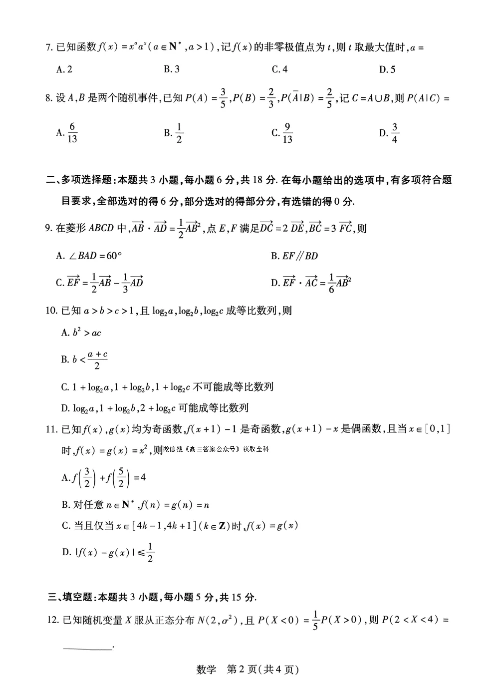 四川省绵阳市2026届高三上学期第二次诊断性考试(绵阳二诊)四川省绵阳市2026届高三上学期第二次诊断性考试(...