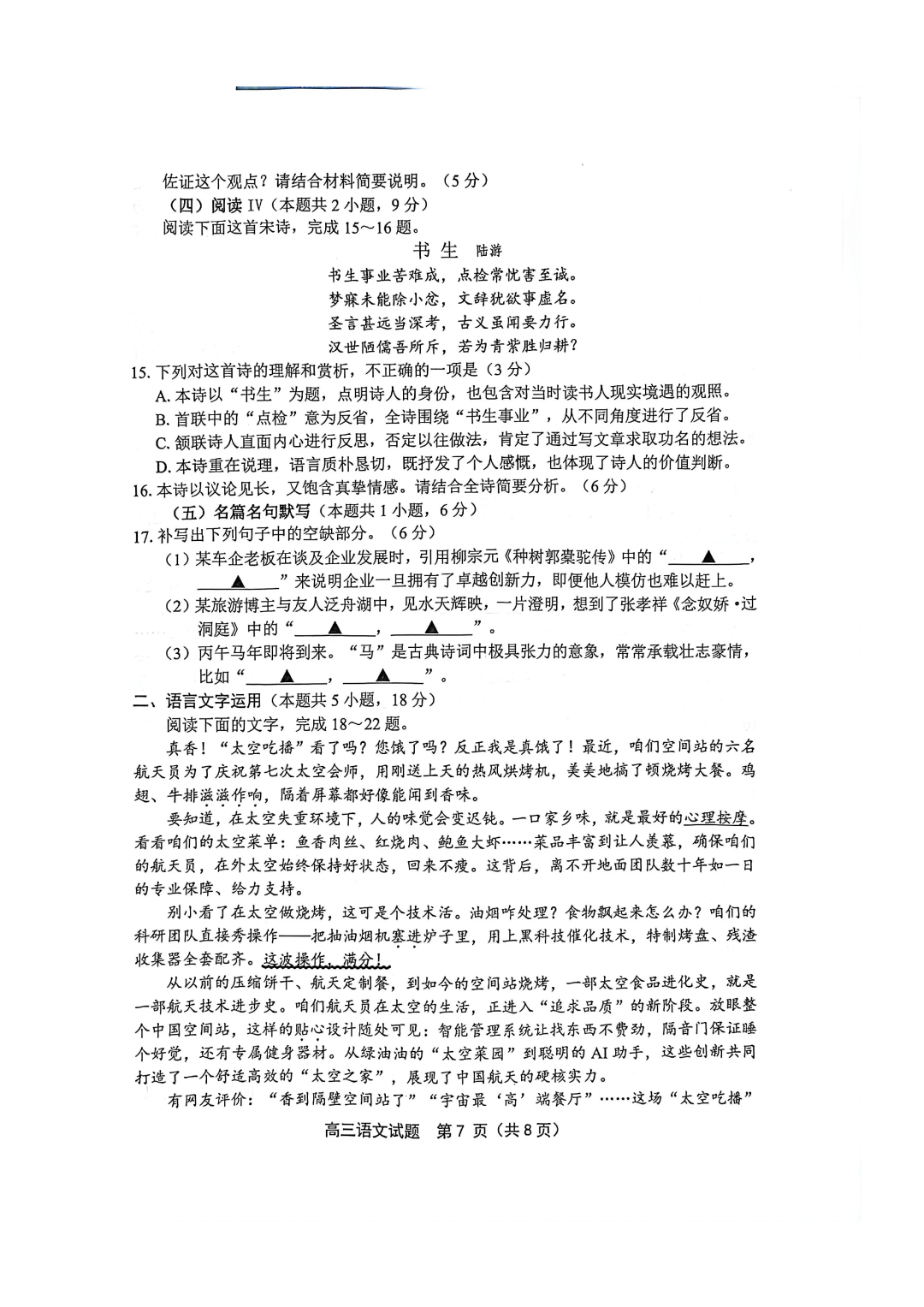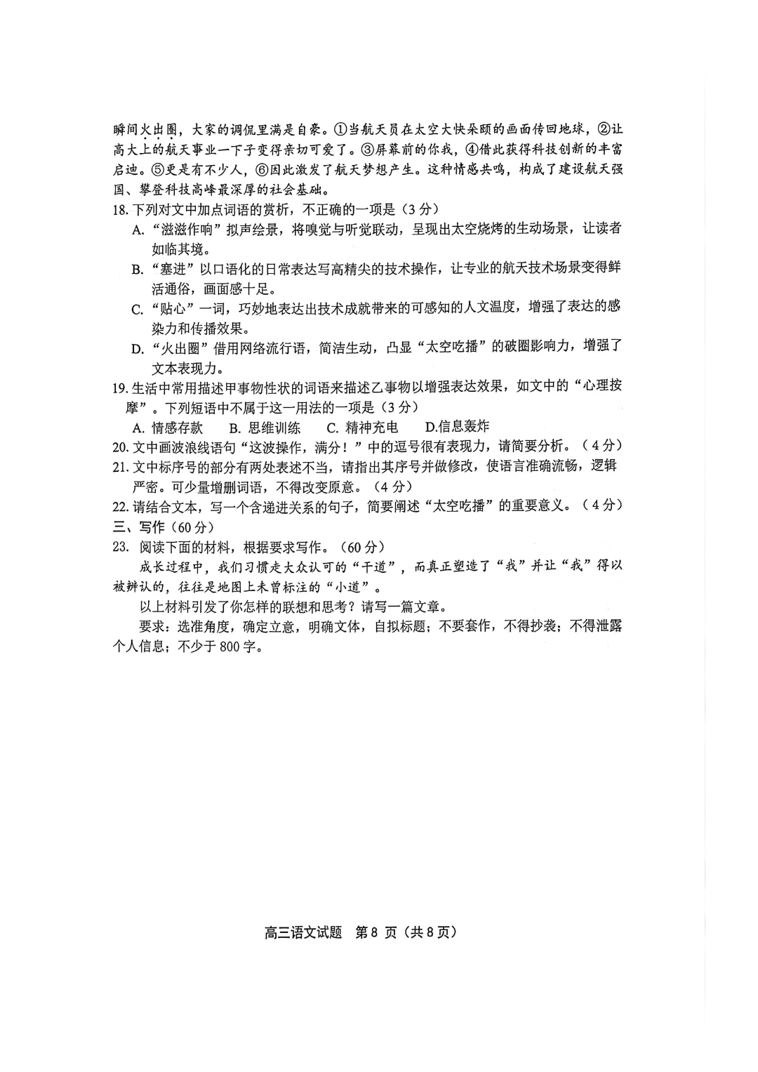 2026年重庆高一、高二上康德卷期末考试语文试卷+答案2026年重庆高一、高二上康德卷期末考试语文试卷+...