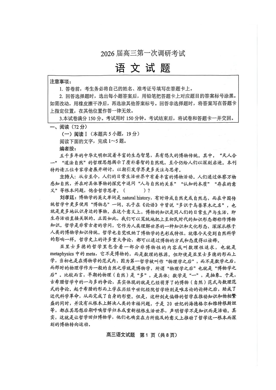 2026届大湾区普通高中毕业年级联合模拟考试(一)第一天科目(大湾区一模)2026届大湾区普通高中毕业年级联合模拟考试(一)...