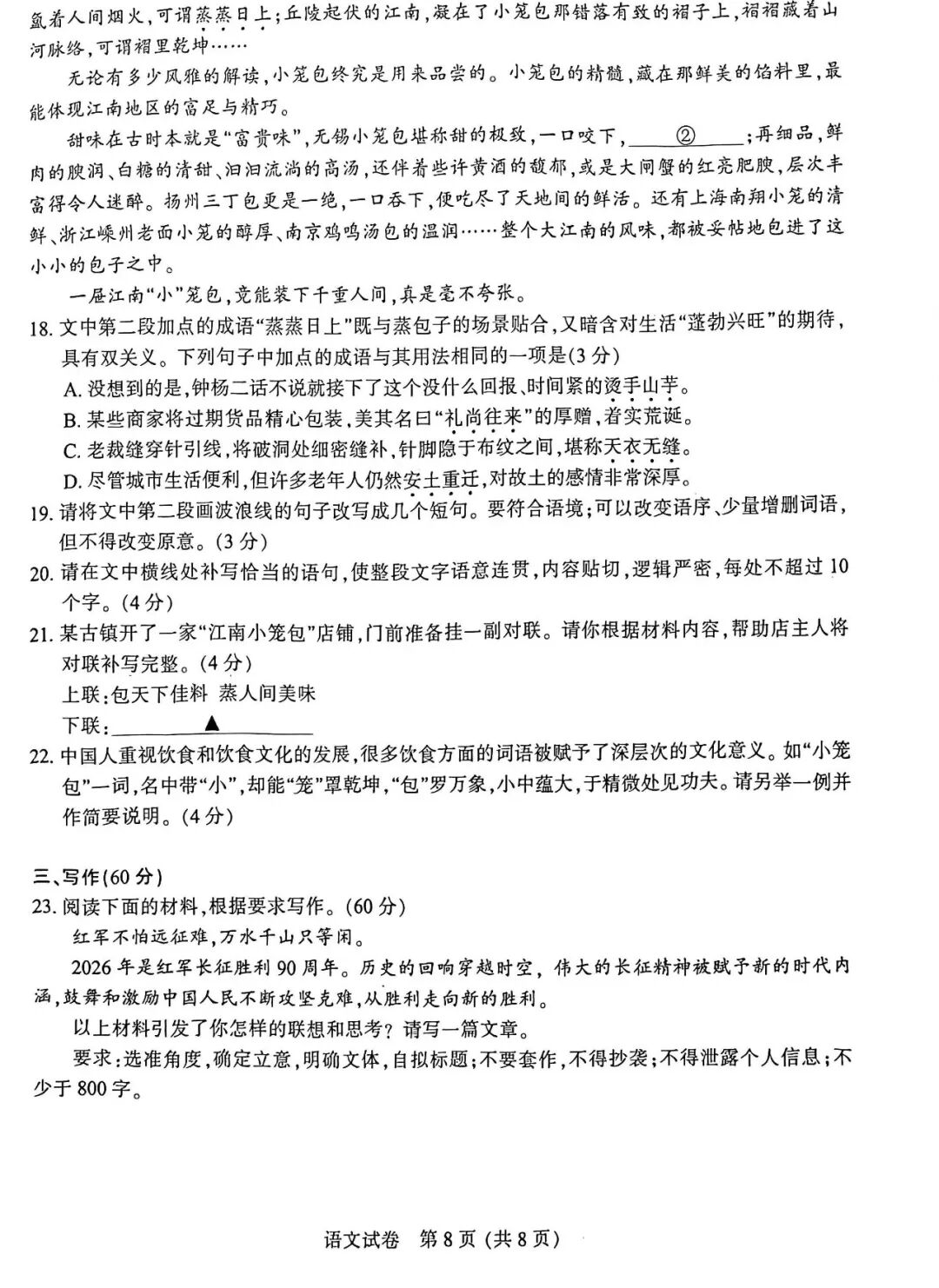 江苏省苏北四市(徐淮连宿)2026届高三一模考试语文试题江苏省苏北四市(徐淮连宿)2026届高三一模考试语...