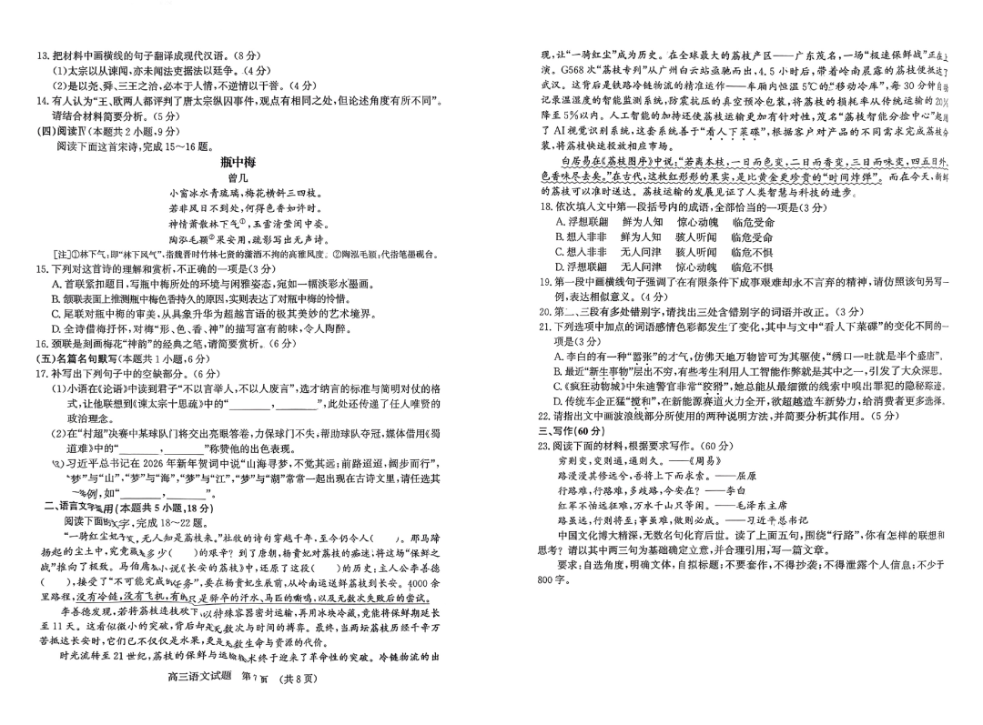 广东省2026届高三上学期1月期末考试语文试卷广东省2026届高三上学期1月期末考试语文试卷