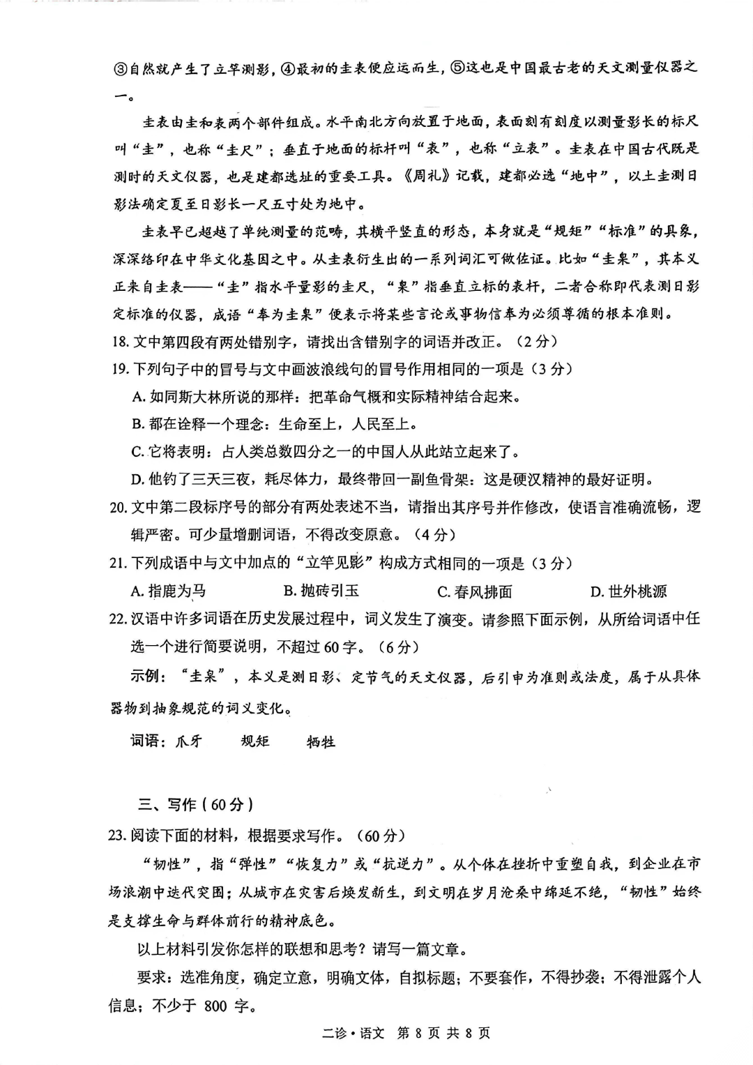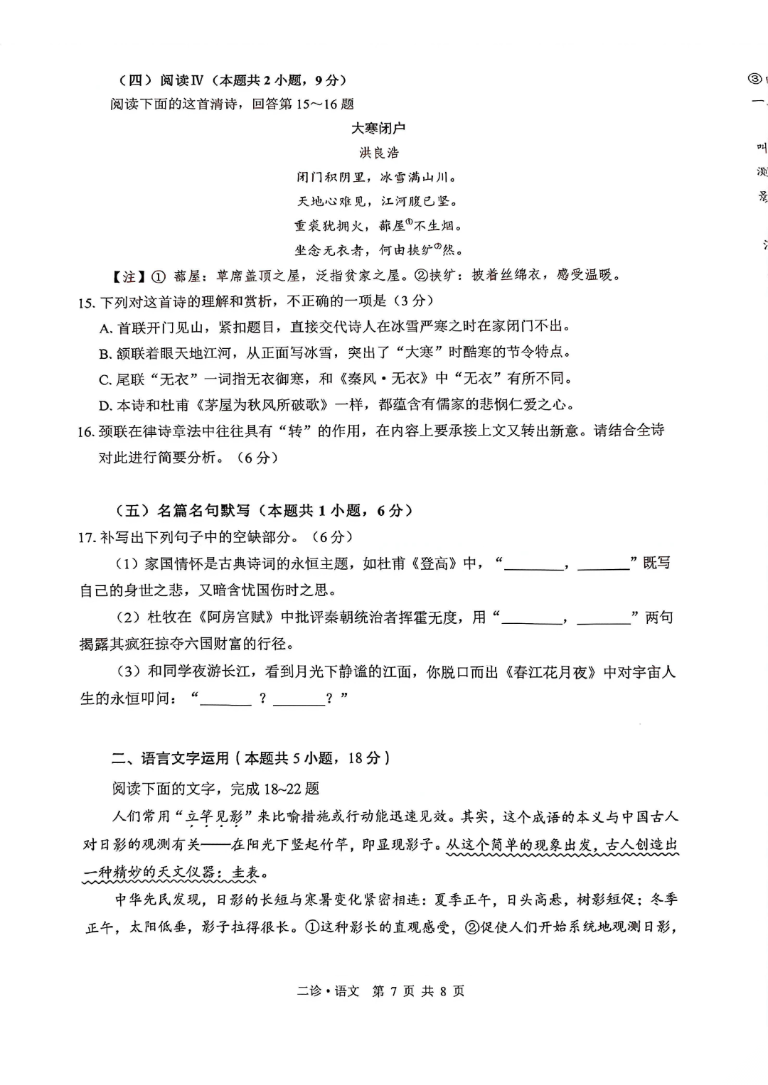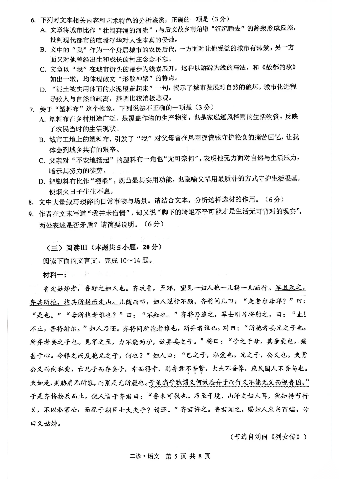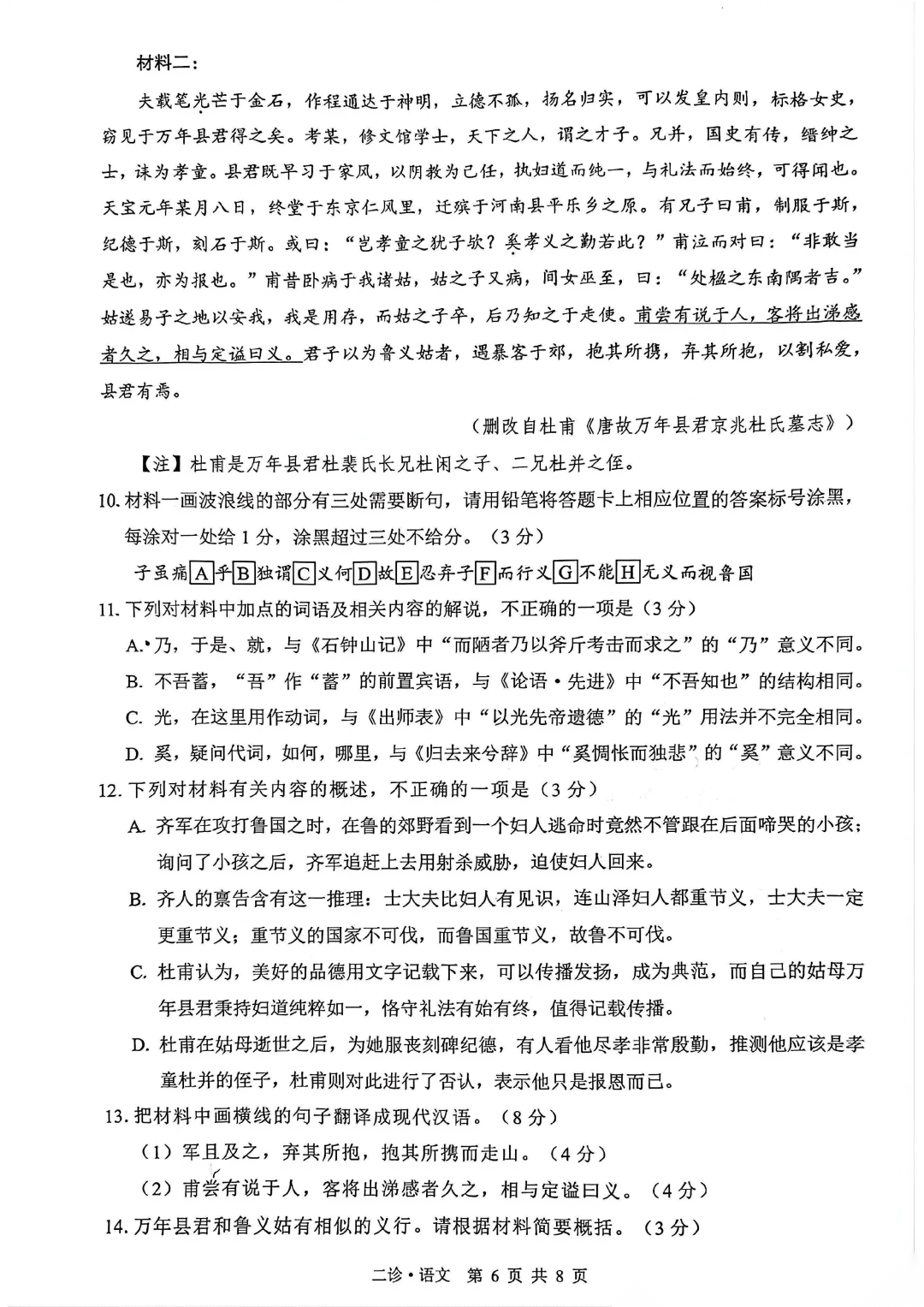 四川省高2023级高三第二次教学质量诊断性考试语文试卷