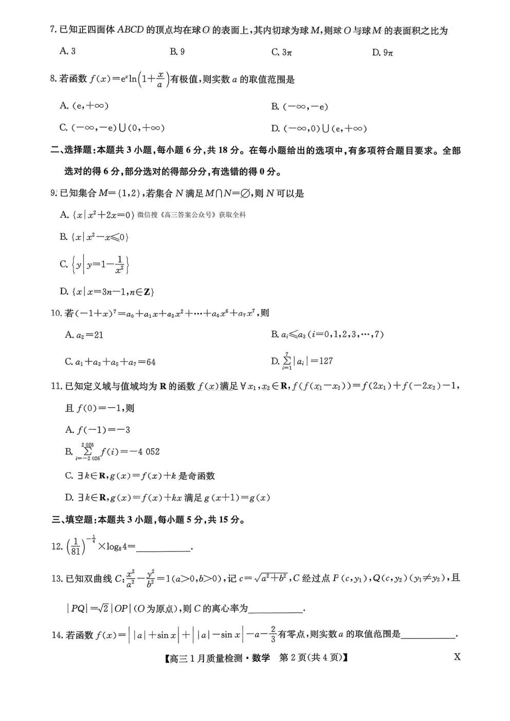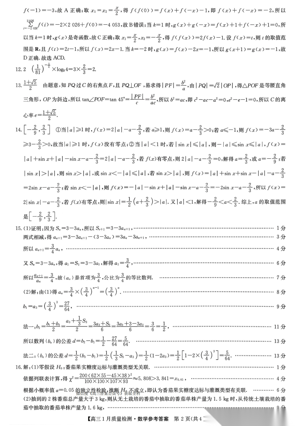 2025-2026学年度高三期末考试答案2025-2026学年度高三期末考试答案