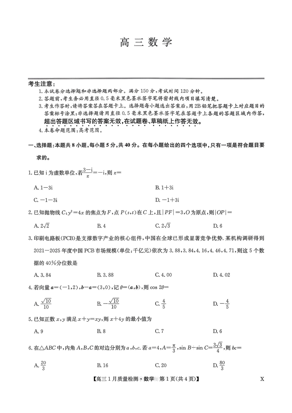 2026年重庆高一上康德卷期末考试数学、政治试卷+答案2026年重庆高一上康德卷期末考试数学、政治试卷+...
