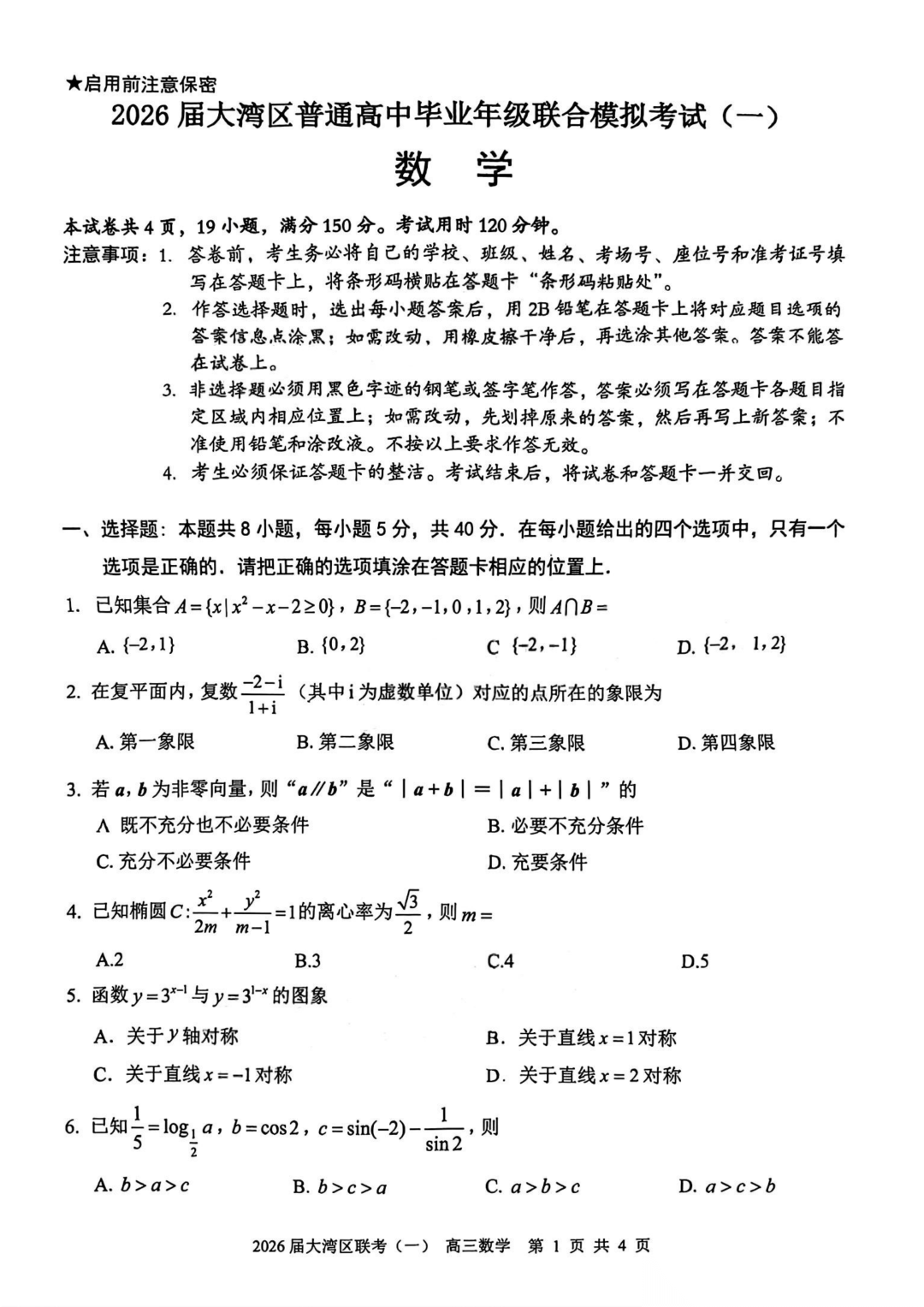 【大湾区一模全科】2026届大湾区普通高中毕业年级联合模拟考试(一)