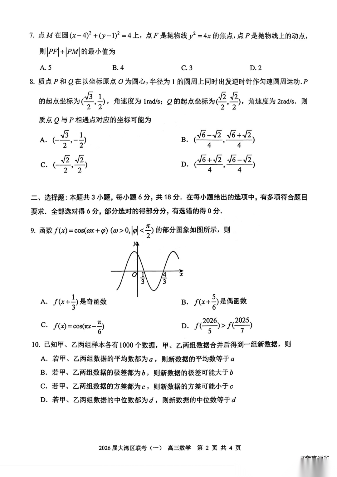 广东省大湾区2026届普通高中毕业年级高三年级联合模拟考试(一)(大湾区一模)广东省大湾区2026届普通高中毕业年级高三年级联合...