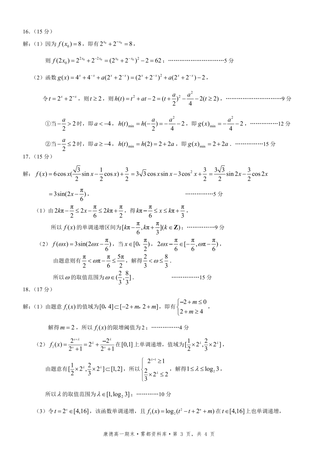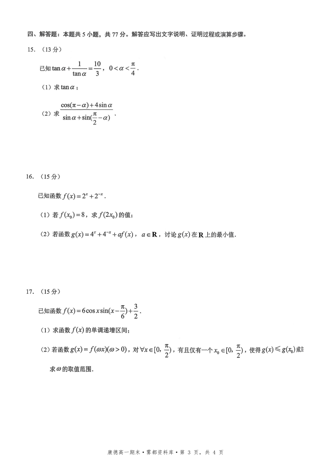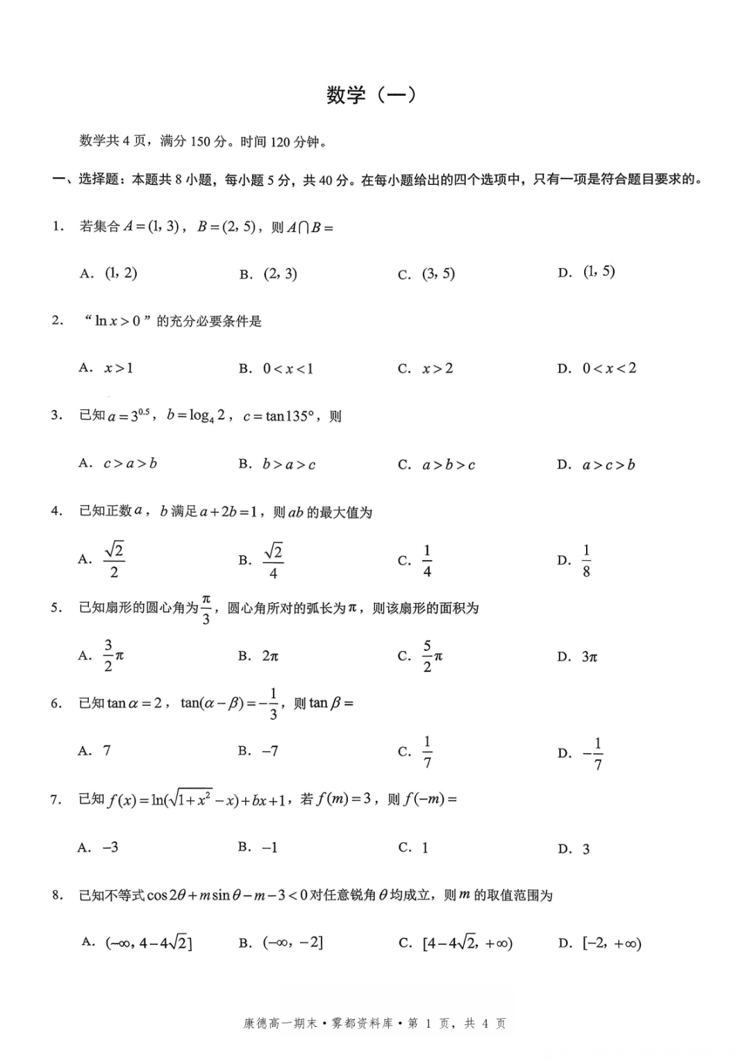 【全科】2028届重庆市高一上学期1月期末考试(康德卷)