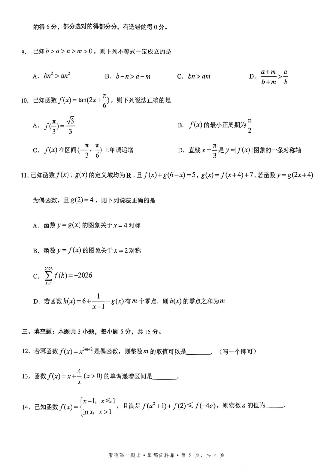 【全科】九龙坡区高2026届学业质量调研抽测(第一次·重庆主城五区一诊)【全科】九龙坡区高2026届学业质量调研抽测(第一...