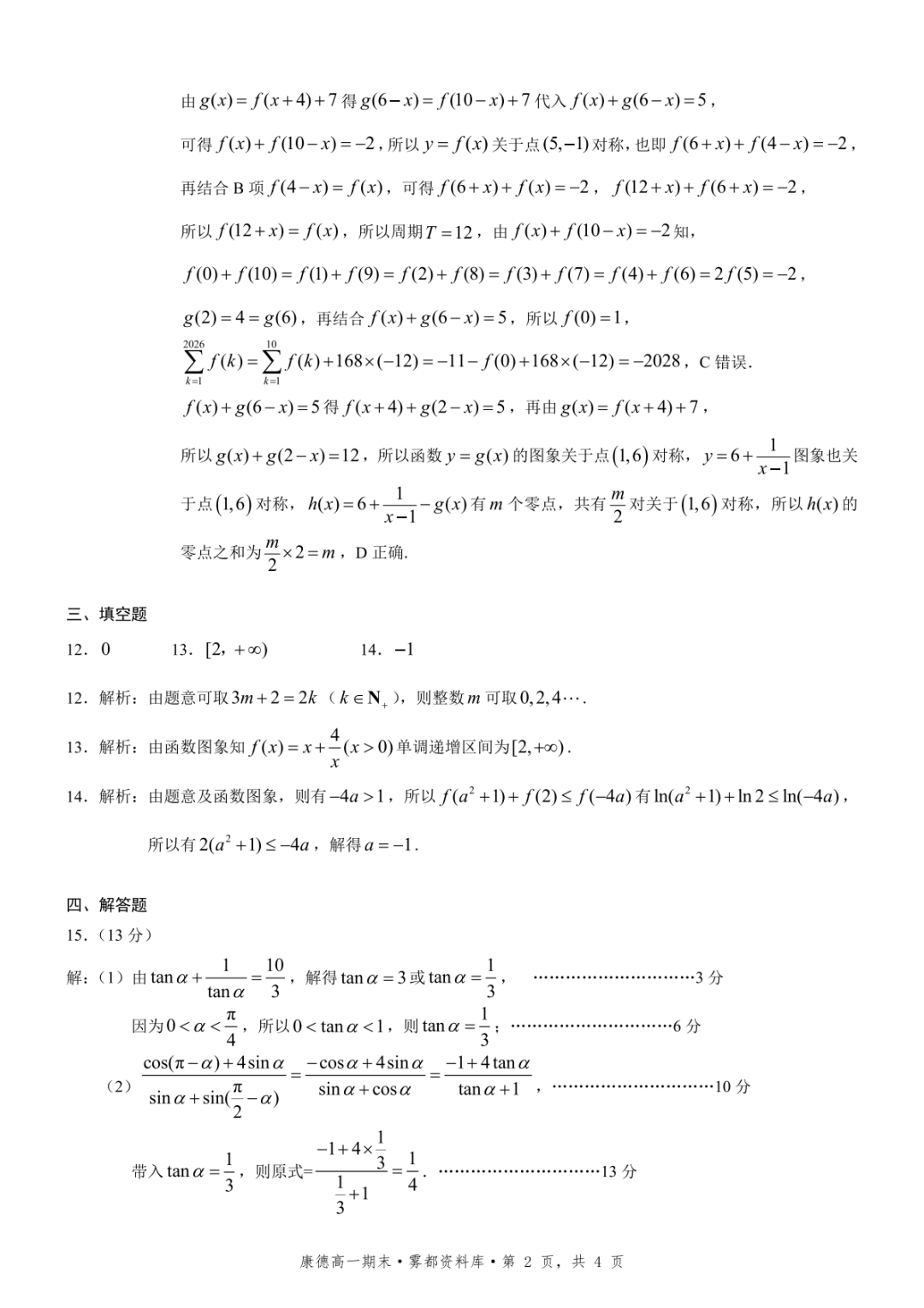 十堰市2026年高三年级元月调研考试答案十堰市2026年高三年级元月调研考试答案
