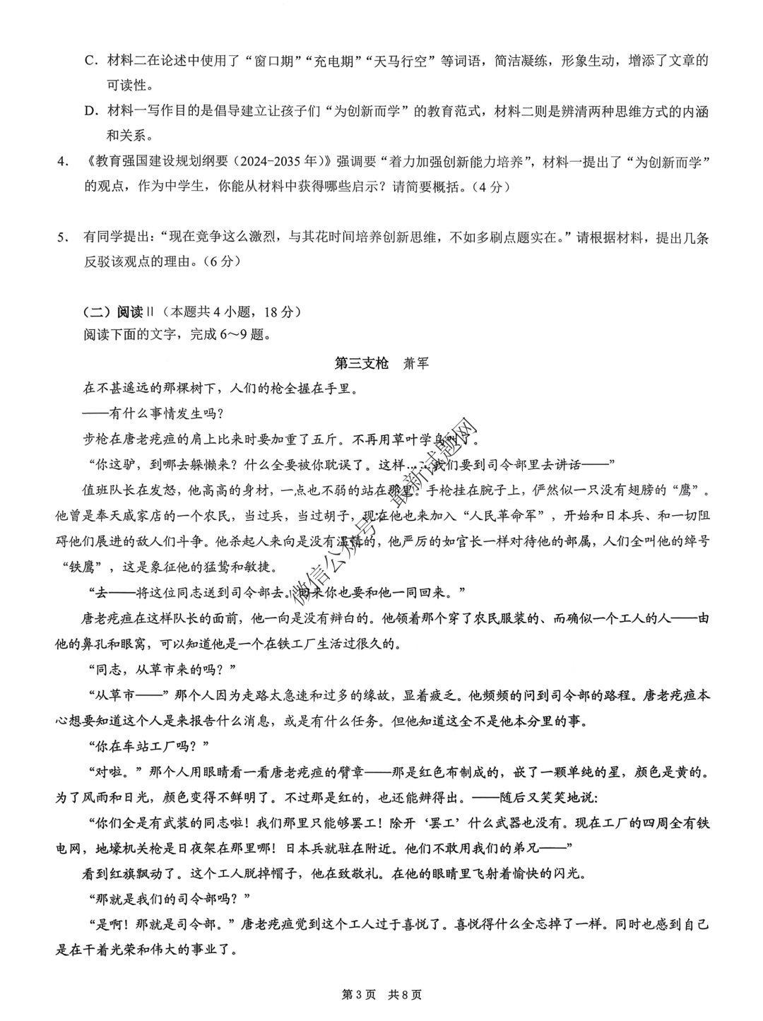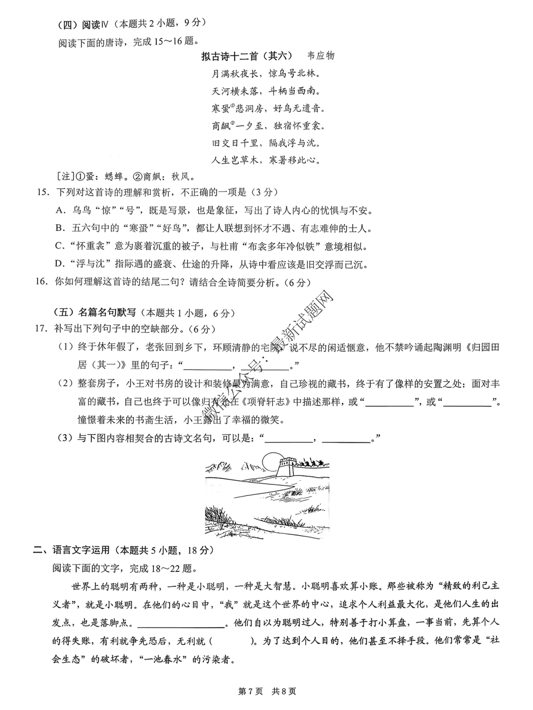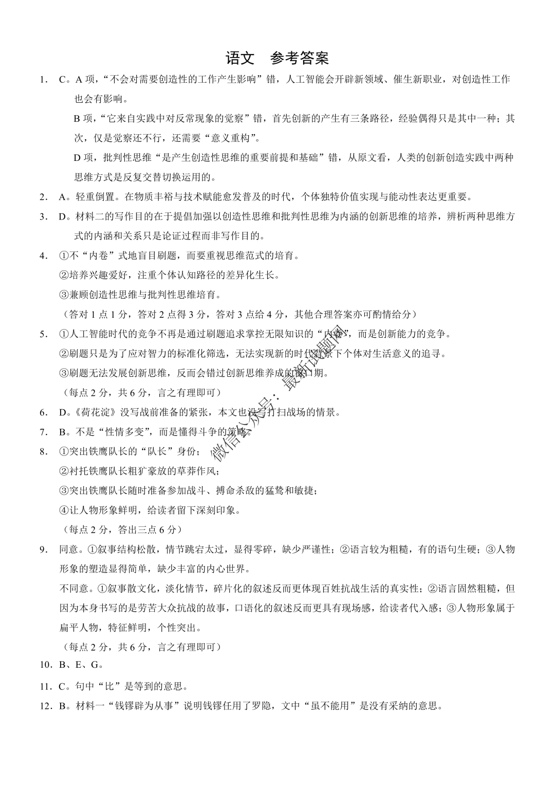 重庆一诊2026届高三1月期末考试康德卷语文试题及答案