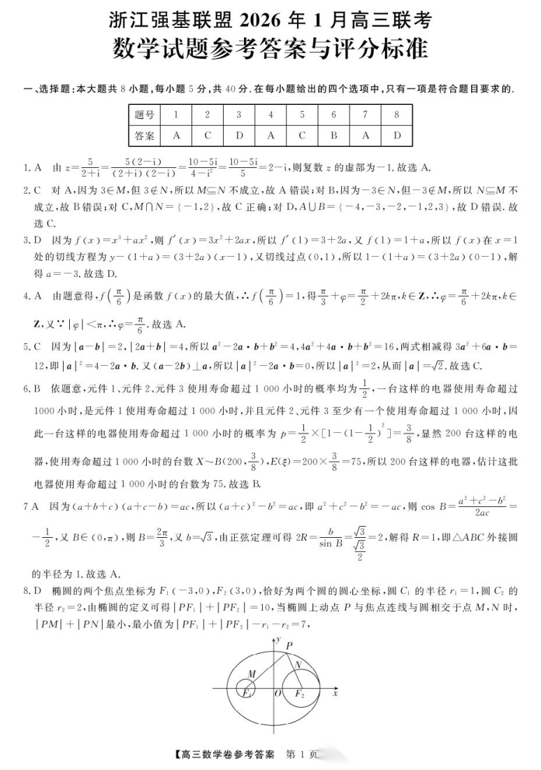 上饶市2026届高三年级第一次高考模拟考试答案上饶市2026届高三年级第一次高考模拟考试答案