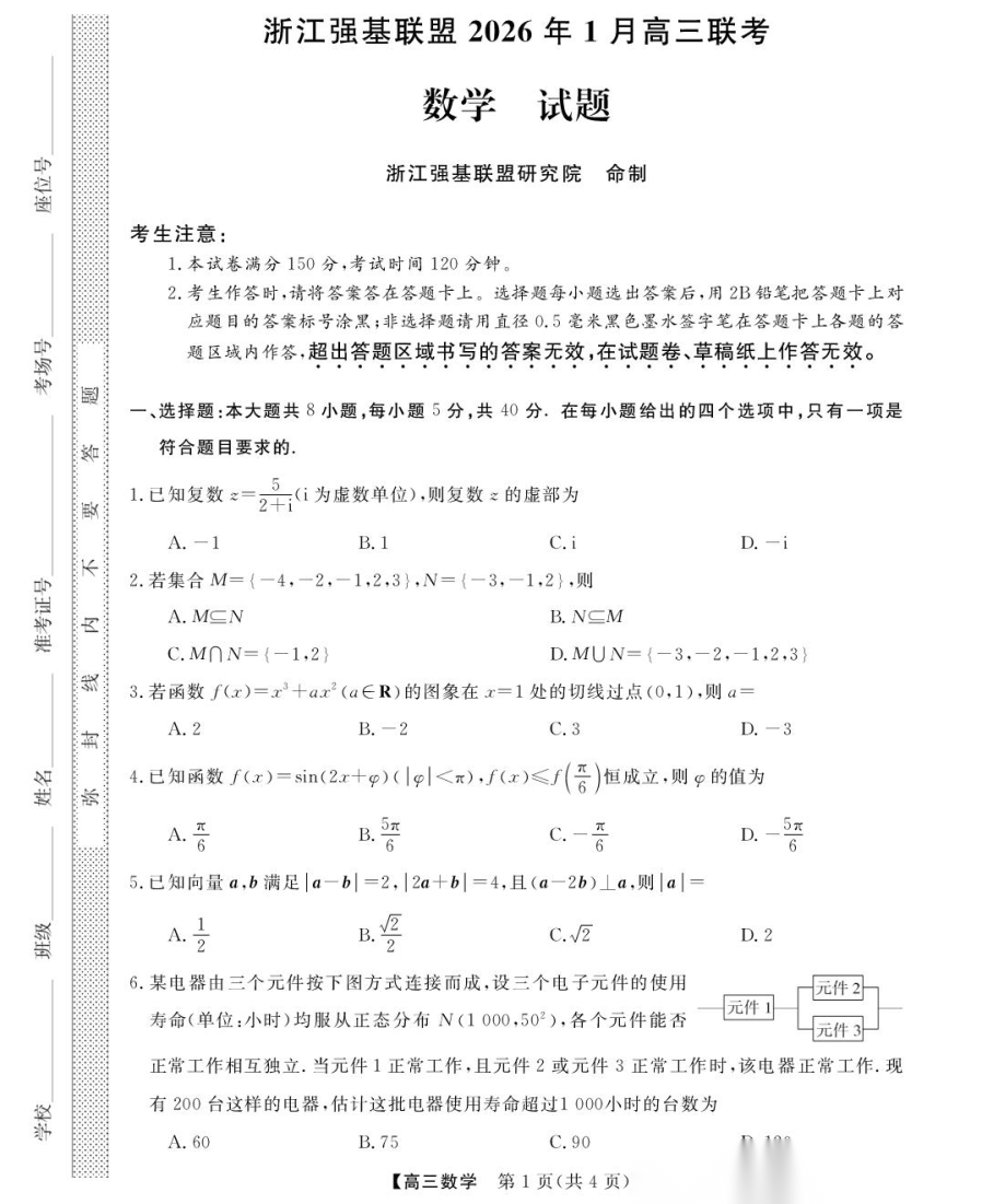 广东省湛江市高三年级2026年高考测试(一)(湛江一模)广东省湛江市高三年级2026年高考测试(一)(湛江...