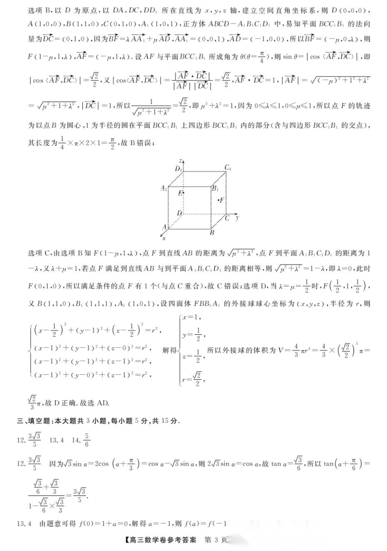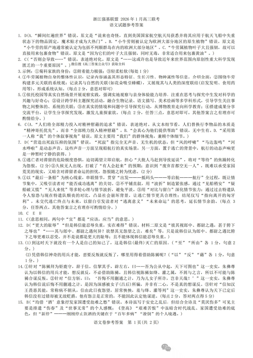 宜春市2025-2026学年高三期末考试答案宜春市2025-2026学年高三期末考试答案