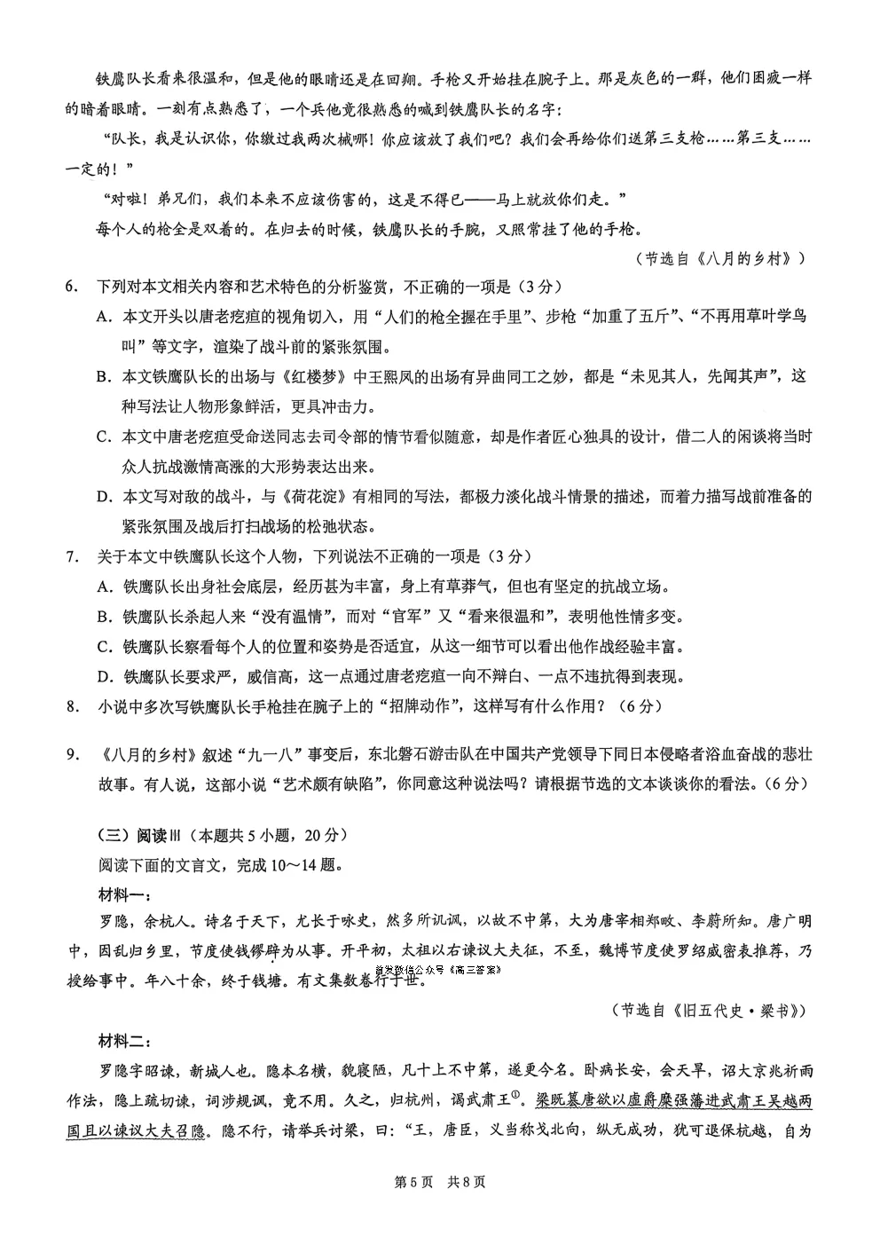 宜春市2025-2026学年高三期末考试答案宜春市2025-2026学年高三期末考试答案