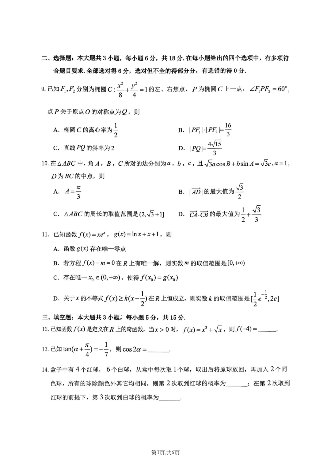 泉州市2026届高三质量监测二答案泉州市2026届高三质量监测二答案