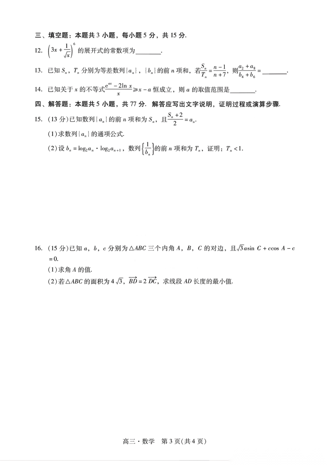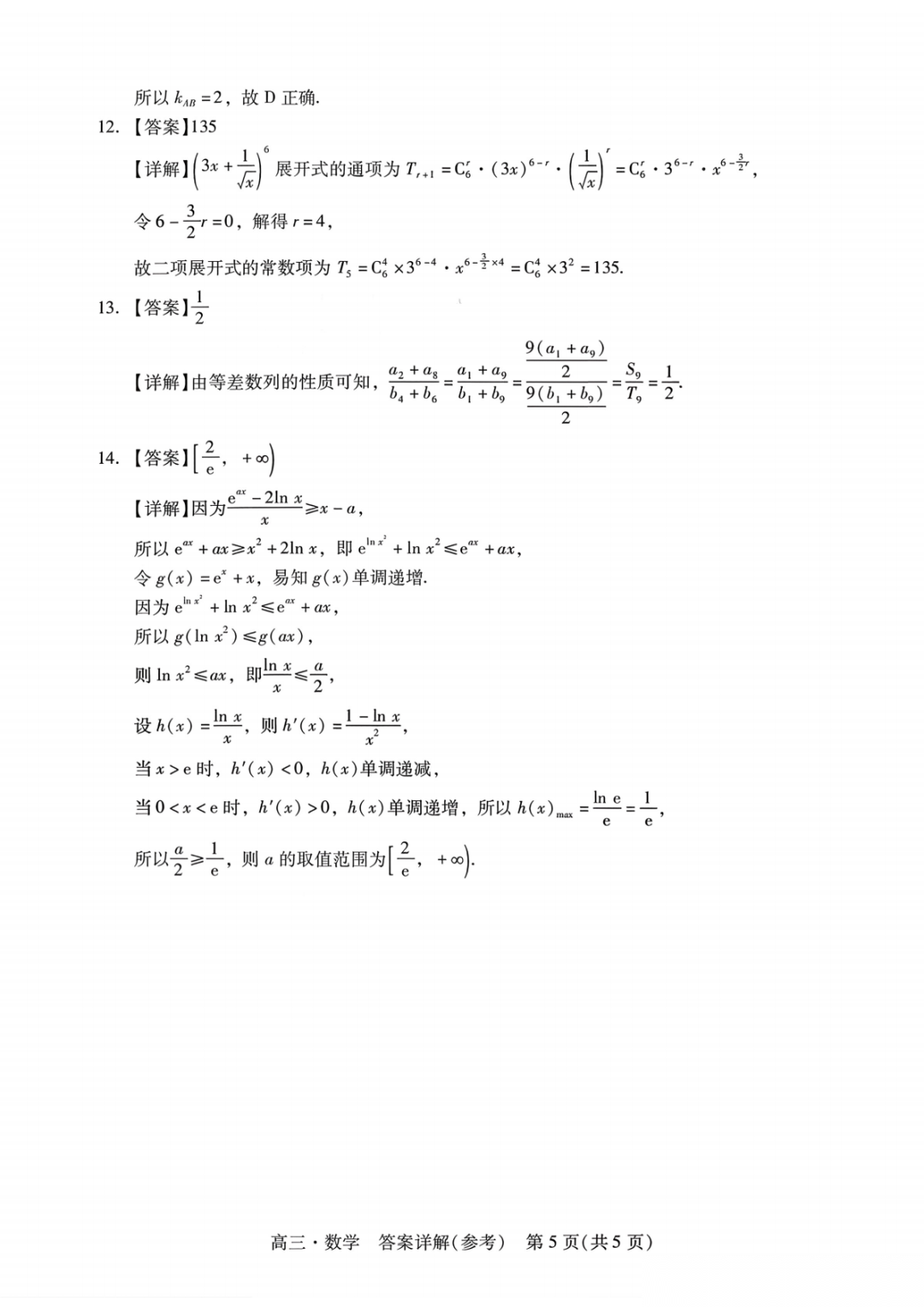 泉州市2026届高三质量监测二答案泉州市2026届高三质量监测二答案