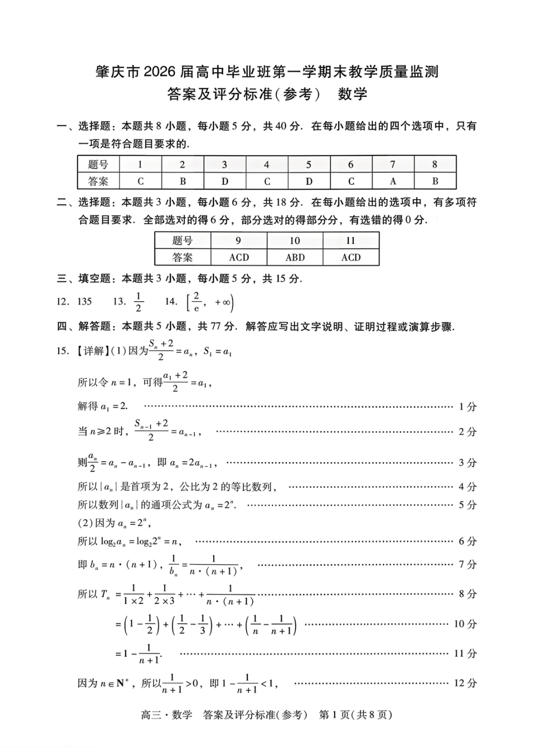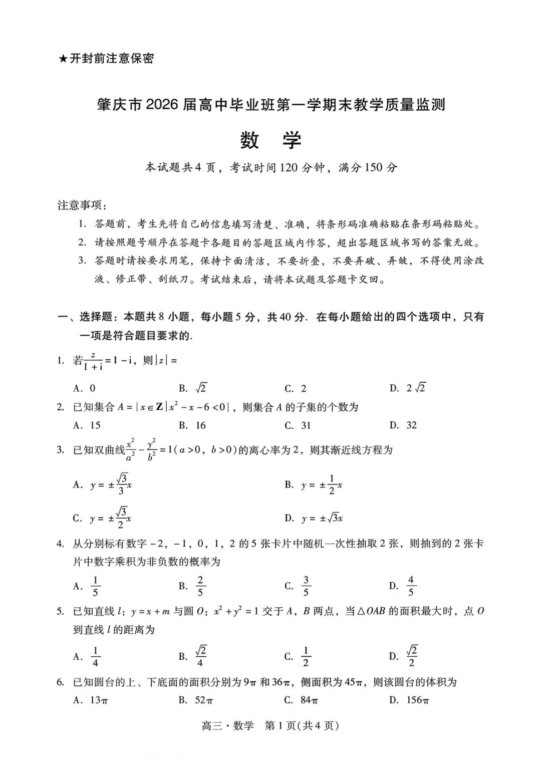 【肇庆二模全科】肇庆市2026届高中毕业班第一学期期末教学质量监测