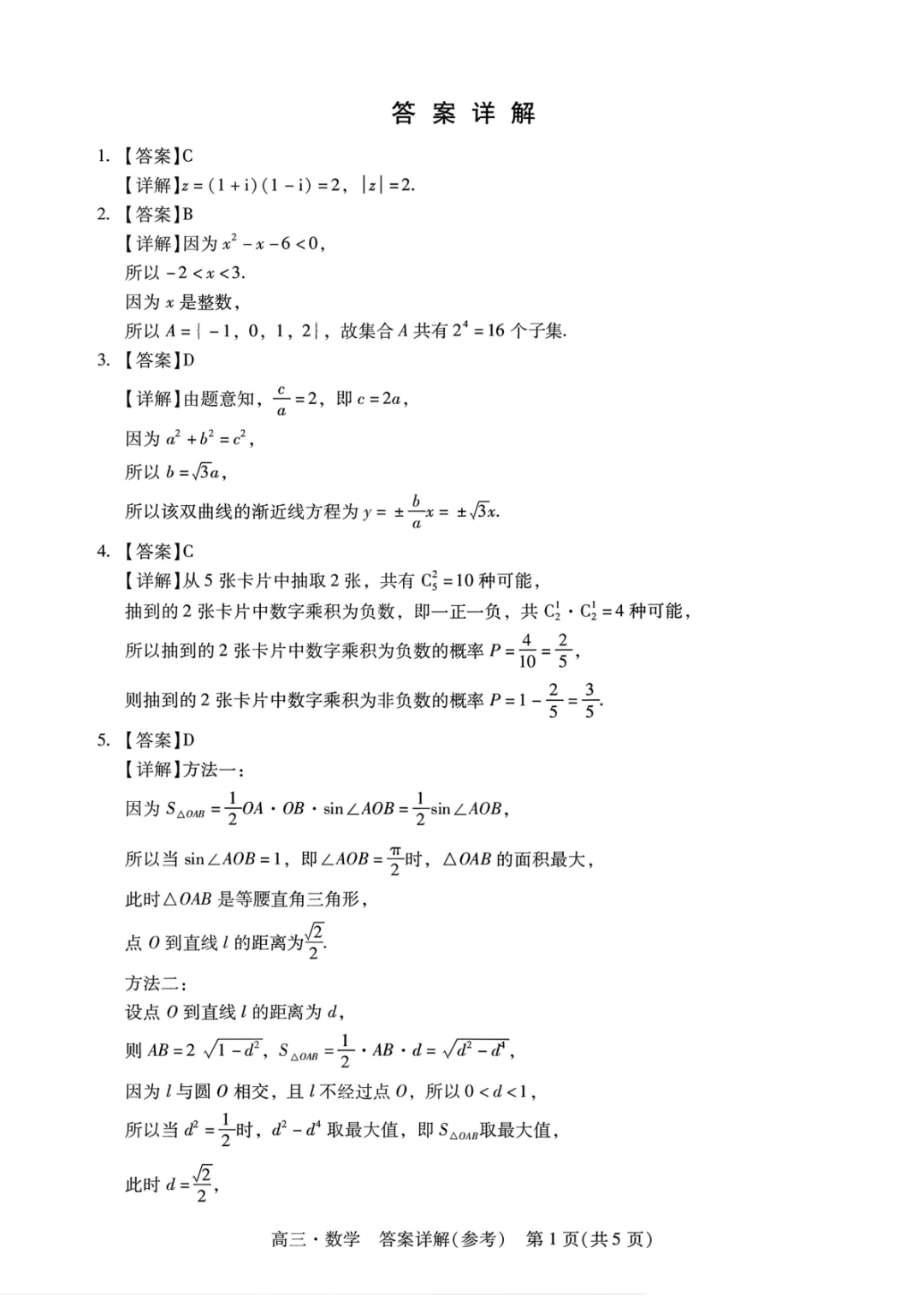 乌鲁木齐2026年高三年级第一次质量监测答案乌鲁木齐2026年高三年级第一次质量监测答案