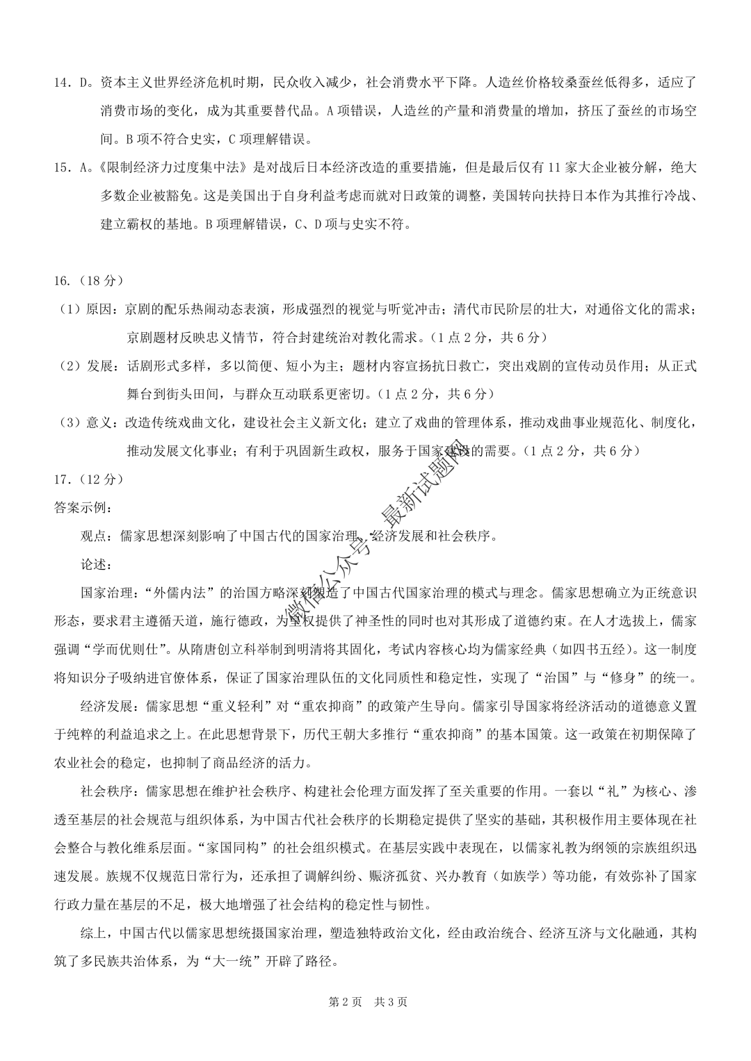 宜春市2025-2026学年高三期末考试答案宜春市2025-2026学年高三期末考试答案