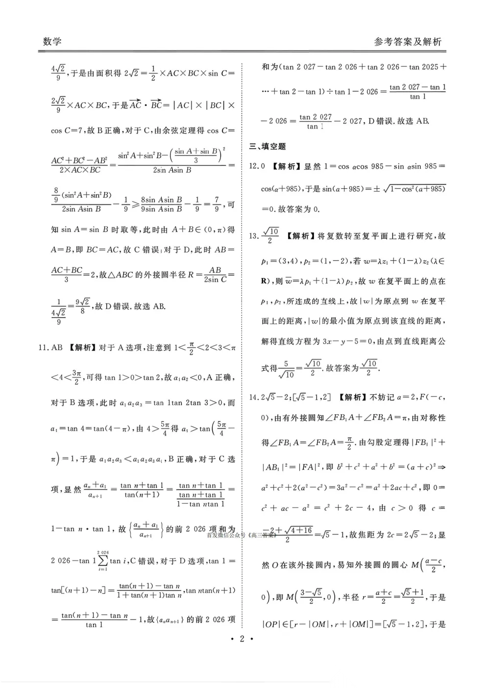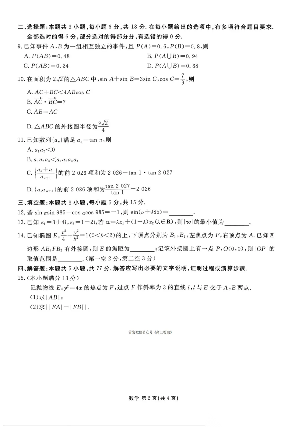 乌鲁木齐2026年高三年级第一次质量监测答案乌鲁木齐2026年高三年级第一次质量监测答案