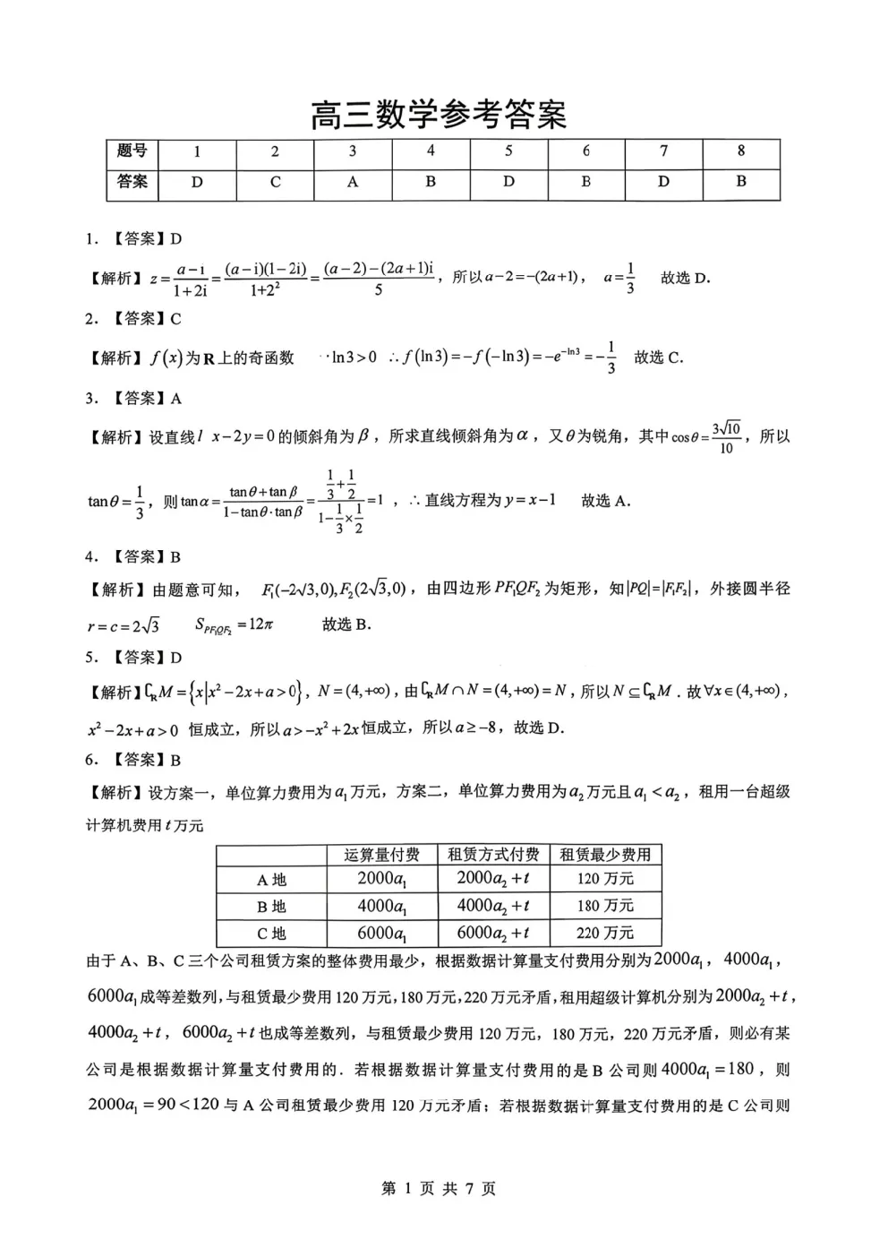 重庆一诊2026届高三康德卷数学试题重庆一诊2026届高三康德卷数学试题